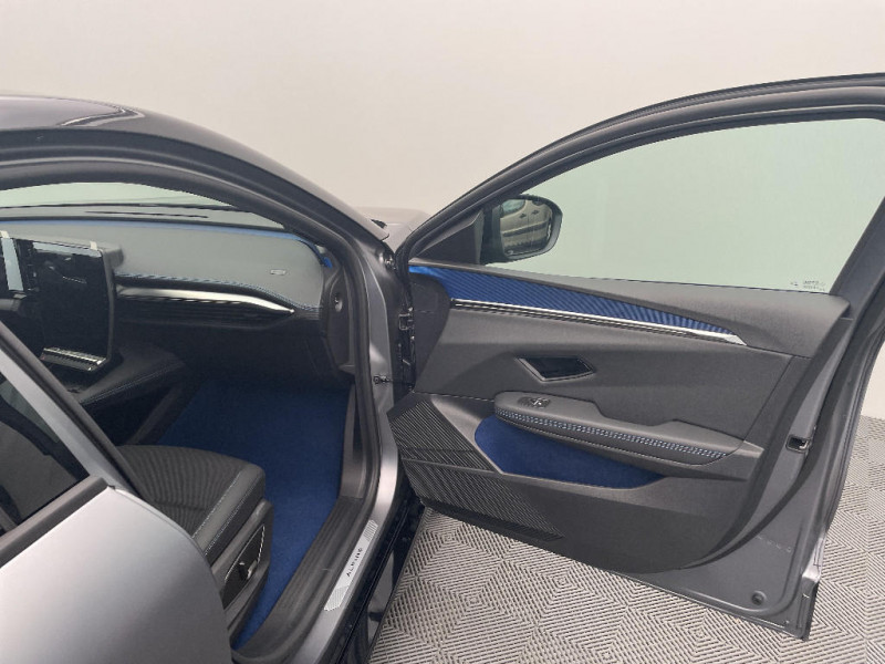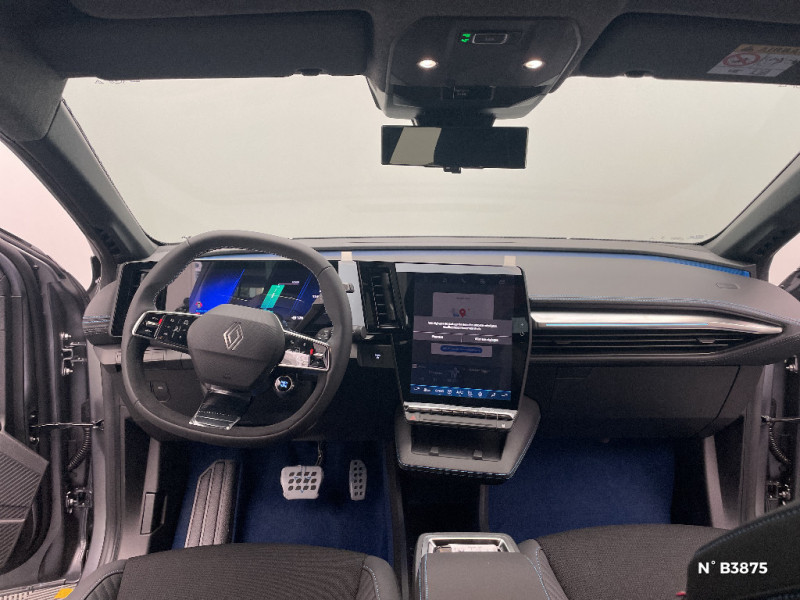 4 Ports USB (2 AV et 2 AR) / Adaptation intelligente de la vitesse / Airbags latéraux, milieu AV et rideaux / Alerte de distance de sécurité / Alerte détection de fatigue / Alerte d'oubli de ceinture de sécurité / Alerte et prévention sortie de voie (dont urgence) / Antenne Requin / Avertisseur d'angle mort et prévention sortie de voie en cas de dépassement / Bandeau full LED AR avec effet 3D "moiré" / Boîte de vitesse automatisée à variation continue / Bouclier AV sport avec lame F1 / Câble pour borne de recharge (mode 3 type 2 triphasé, 5m) / Caméra de recul digitale haute définition / Carte Renault accès et démarrage mains libres / Changement d'intensité du freinage régénératif par palettes / Chargeur AC 11 kW triphasé (compatible V2G/V2L) / Commutation automatique des feux de route/croisement / Console de rangement haute avec accoudoir central coulissant / Détection de la pression des pneumatiques / Direction assistée avec assistance variable / Finition extérieure esprit Alpine / Freinage automatique d'urgence en ville pour deux roues et piétons / Gestion automatique des feux diurnes et des essuie-glaces / Jantes alliage diamantées en noir verni fumé 20" speedway / Kit de réparation pour pneumatiques / Lame f1 gris schiste satin / Maintenance connectée, incluse pendant 8 ans / Mise à jour système (via firmware over the air FOTA), inclus pendant 5 ans / Moquette couleur bleu esprit Alpine / Multi-sense / Notice d'utilisation digitale embarqué dans le système multimédia du véhicule / Pack connected driving, inclus pendant 5 ans / Pack contrôle à distance (via l'application My Renault), inclus pendant 5 ans / Planche de bord en tissu recyclé gris chiné / Poignées de portes affleurantes / Pompe à chaleur / Projecteurs full LED directionnels avec fonction antibrouillard / Radars AV, AR et latéraux / Réplication smartphone / Rétroviseur jour/nuit automatique / Sellerie maille embossée recyclée / textile refined matelassé noir titane et surpiqûres bleu Alpine / Sièges AV électriques avec réglage lombaire + siège conducteur massant / Sièges avec système ISOFIX / Sièges typés sport, volant Alpine, planche de bord spécifique, pièces décor bleues / Signature lumineuse AV / Système d'optimisation de la température batterie (charge rapide DC) / Système Multimédia openR link 12" : Google intégré, préconditionnement batterie pour charge DC, audio Arkamys Auditorium / Tableau de bord full numérique / Volant chauffant / Volant en textile refined biosourcé
