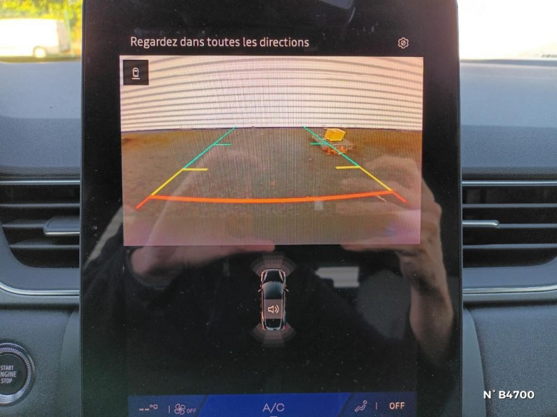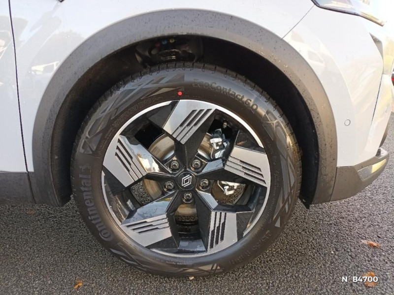 Tableau de bord avec écran numérique et personnalisable 10" / Contrôle de la traction (TCS) / Eclairage AV et AR Full LED Pure Vision / Feux AR avec signature lumineuse Y / Feux AR 3D / Jantes alliage 18'' diamantées Gravity / Kit de gonflage / Maintenance connectée, incluse pendant 8 ans / Miroirs de courtoisie rétroéclairés / Mise à jour système (via firmware over the air FOTA), inclus pendant 5 ans / My Safety switch (raccourci vers configuration personnalisée des aides à la conduite) / Ouverture du hayon manuelle / Pack connected driving, inclus pendant 5 ans / Pack contrôle à distance (via l'application My Renault), inclus pendant 5 ans / Poignées de portes ton caisse / Prédisposition éthylotest / Renault Multi-sense / Répétiteurs latéraux de changement de direction / Rétroviseur intérieur chrome frameless / Sellerie Techno / Système de contrôle de trajectoire ESC avec aide au démarrage en côte / Frein de parking électrique avec fonction Auto-Hold / Harmonie noire / Aide au parking AV/AR et latéral / Alerte de distance de sécurité / Alerte détection de fatigue / Alerte franchissement de ligne et assistant maintien dans la voie / Antenne Requin / Boîte de vitesse hybride multimode 6 rapports / Boitier connect AIVC / Cartographie Standard / Ceinture centrale AR 3 points / Compartiment de coffre / Indicateur de changement de vitesse / Système ISOFIX (i-Size) aux places latérales AR et passager AV / Système multimédia openR link 10.4" avecGoogle intégré