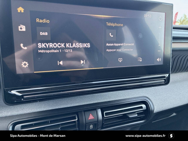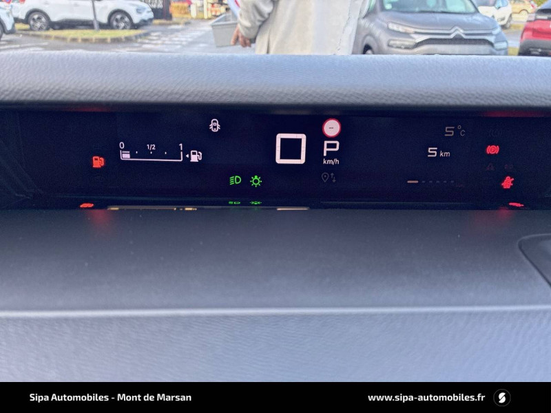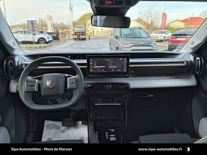 1 Prise USB type-C (charge rapide 3A) sur la console centrale / 1 Prise USB type-C (charge standard et data) sur la planche de bord / 2 Prises USB type-C (charge rapide 3A) en rang 2 / ABS, ESP / Aérateurs latéraux en noir brillant et 2 aérateurs en zone centrale sur planche de bord / AFU, REF / Avertisseur sonore monoton / Banquette AR avec dossier fractionnable 2/3 et 1/3 / Barres de toit Noir Brillant / Boîte automatique 6 rapports / Boîtier télématique: Appel d'urgence et Citroën Assistance les services Connect ONE pendant une période de 10 ans / Citroën Head up Display (affichage tête haute couleur) - TFT / Commutation automatique des feux de route / Console centrale haute avec accoudoir et rangement fermé / Décors extérieurs Noir Brillant / Décors sur les panneaux de portes AV/AR et sur la planche de bord Bronze / Détection de sous-gonflage / Eclairage d'accompagnement et d'accueil / Eclairage d'ambiance monochromatique / Ecran central 10,25 " tactile: Apple CarPlay et Android Auto sans fil Système audio 6 HPs (DAB) / Elargisseurs d'ailes Noir Mat / Enjoliveurs 17" SYLVANITE (avec pneus classe A chainables) / Essuie-vitre AV automatique (capteur de pluie) / Frein de stationnement électrique / Garnissage Tissu Noir /Tissu Quadric Ambiance Urban Bronze avec Sièges Advanced Comfort / Lève-vitres AR électriques (descente séquentielle) / Lève-vitres AV électriques (descente séquentielle) / Ordinateur de bord multifonctions avec indicateur de température exterieure / Pack Safety - Active Safety Brake (Freinage automatique d'urgence) - Alerte active de Franchissement Involontaire de Ligne - Alerte Attention Conducteur - Reconnaissance des panneaux de vitesse - Régulateur-limiteur de vitesse / Plafonnier AV à LED avec lecteurs de cartes / Plancher de coffre escamotable / Poches aumônières au dos des sièges AV / Poignées de maintien au rang 2 / Poignées de portes extérieures Noir Brillant / Prise 12 V à l'AR de console centrale / Sabots AV et AR / Suspension Citroën Advanced Comfort / TCS (Contrôle de la traction) / Témoin de non-bouclage des ceintures de sécurité conducteur et passagers / Volant Gainé avec décor chrome / Volet d'occultation du miroir de courtoise conducteur et passager