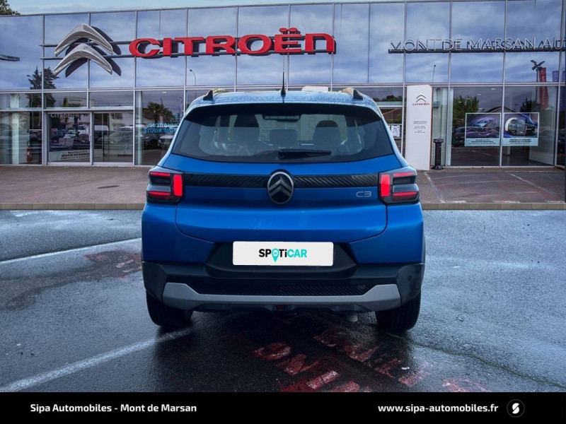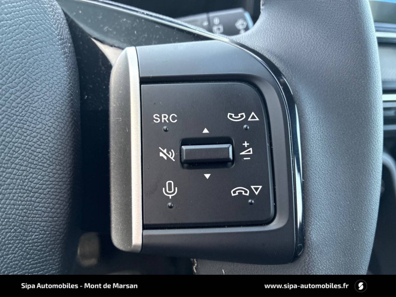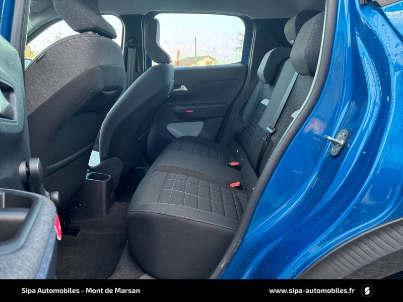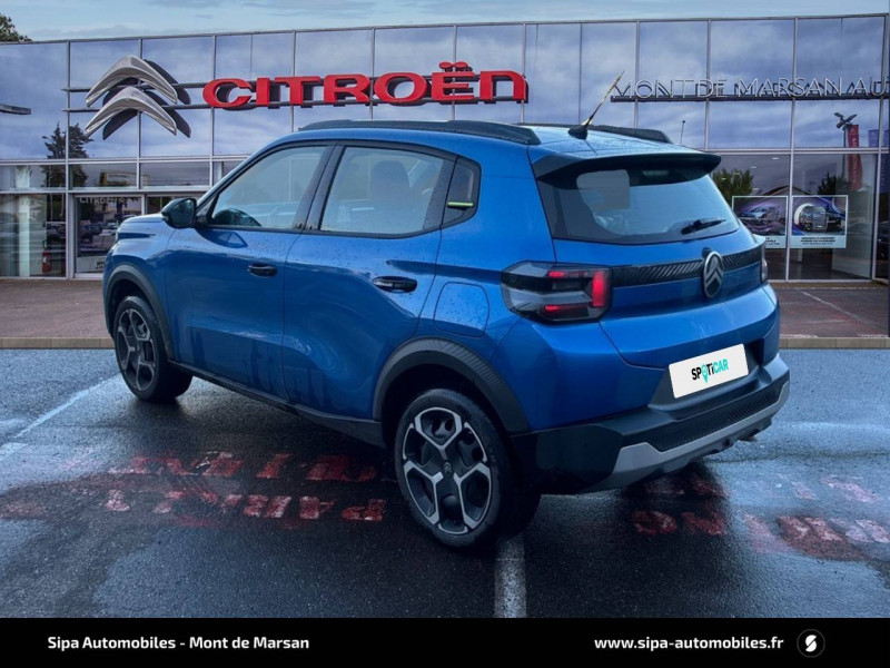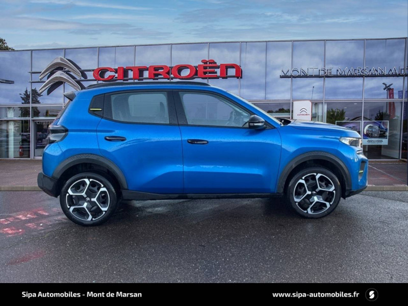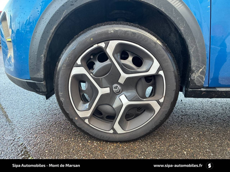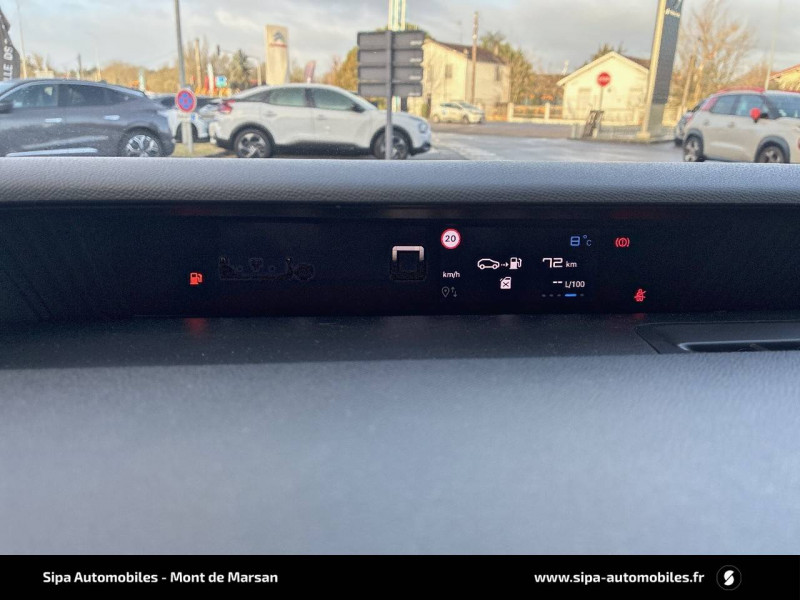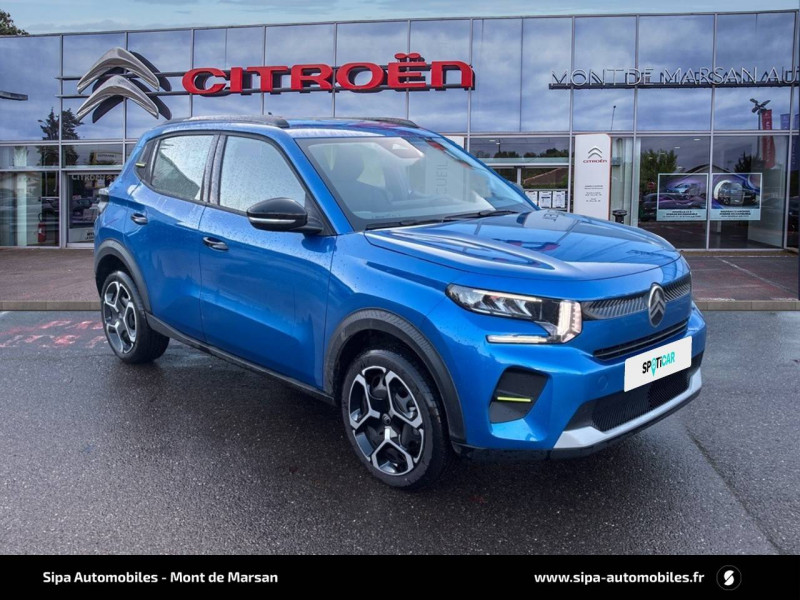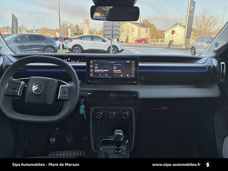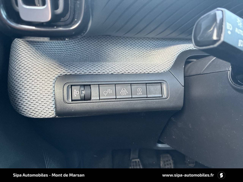 1 prise USB -C sur la planche de bord (charge rapide 3A) / 2 Prises USB type-C (charge rapide 3A) en rang 2 / ABS, ESP / AFU, REF / Ambiance Urban Grey - Accoudoirs de porte AV et AR recouverts de textile moussé avec étiquette "Happy Tags" (messages positifs), - Appui-têtes AV réglables en hauteur, - Décors sur les panneaux de porte AV Ultra Blue, - Décors sur la planche de bord Gris Ultra Blue, - Poches aumônières et poches supplémentaires pour smartphone au dos des sièges AV / Barres de toit Noir Brillant / Boîte manuelle 6 rapports / Boîtier télématique: Appel d'urgence et Citroën Assistance les services Connect ONE pendant une période de 10 ans / Citroën Head up Display (affichage tête haute) - TFT / Commutation automatique des feux de route / Décors extérieurs Noir Brillant (enjoliveurs de montant central et custode) / Détection de sous-gonflage / Ecran central 10,25 " tactile: Apple CarPlay et Android Auto sans fil Système audio 6 HPs (DAB) / Elargisseurs d'ailes Noir Mat / Enjoliveurs 17" AZURITE / Essuie-vitre AV automatique (capteur de pluie) / Garnissage Tissu Noir / Tissu Asphalt avec Sièges Advanced Comfort / Lève-vitres AR manuels / Lève-vitres AV électriques (descente séquentielle) / Pack Safety - Active Safety Brake (Freinage automatique d'urgence) - Alerte active de Franchissement Involontaire de Ligne - Alerte Attention Conducteur - Reconnaissance des panneaux de signalisation - Régulateur-limiteur de vitesse / Poignées de portes extérieures Noir Brillant / Sabots de protection AV et AR / Station d'accueil Smartphone Radio via smartphone (avec application My Citroën Play), 2 HP en rang 1, Commande de la radio sur le volant / Suspension Citroën Advanced Comfort / Témoin et alerte de non-bouclage des ceintures AV et de débouclage AV et AR / Toit Monoton