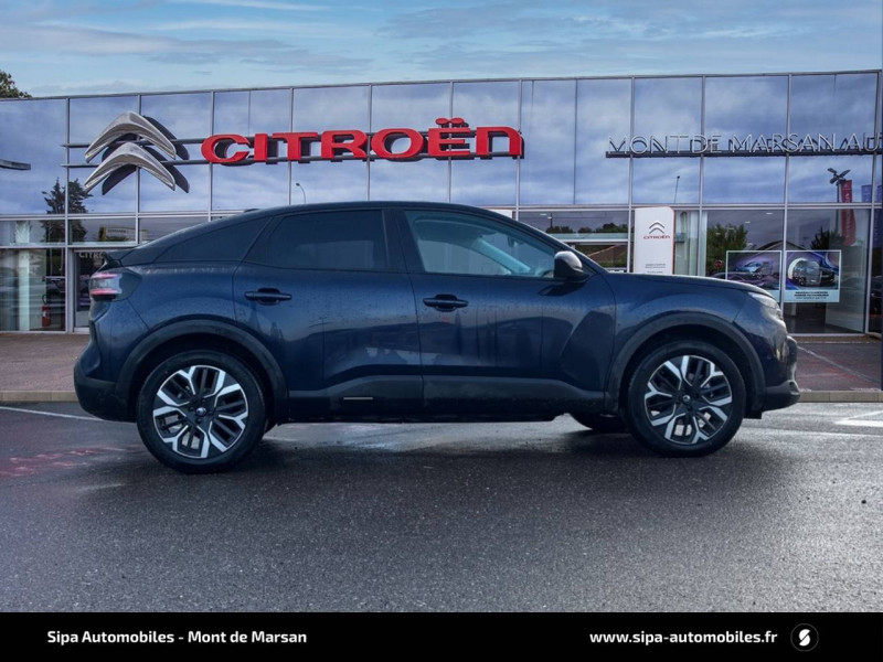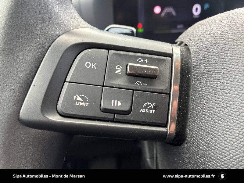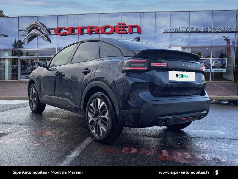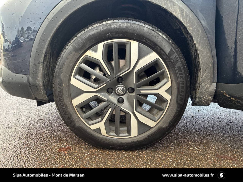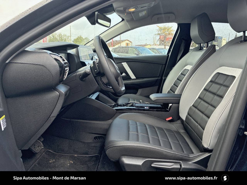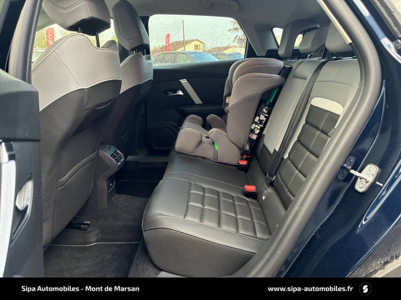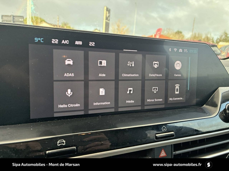 2 prises USB au rang 1 (1 type C + 1 type A) + 1 prise USB en rang 2 (type A) / ABS + AFU + ESP + REF / Accès et démarrage mains libres Proximity 2 Télécommandes 3 boutons (verrouillage, coffre et déverrouillage). / Aérateurs centraux en rang 2 / Boîte automatique 6 rapports / Color Clips Gold Satin / Console centrale haute avec rangements et accoudoir / Détection de sous-gonflage / Eclairage d'accompagnement sous les rétroviseurs extérieurs / Ecran central 10" tactile: - Système audio numérique (DAB) 6 HPs - Apple CarPlay et Android Auto sans fil - Reconnaissance vocale - Kit mains libres Bluetooth - Boîtier télématique : Appel d'urgence et Citroën Assistance / Elargisseurs d'aile et bas de caisse Noir Mat / Feux AR à LED avec signature lumineuse / Feux diurnes à LED avec signature lumineuse / Frein de stationnement électrique automatique / Garnissage Toile enduite Noir/Toile enduite Gris Clair Ambiance Metropolitan Grey + Sièges Advanced Comfort / Jantes alliage 18" AMBER Diamantées / Kit de dépannage provisoire de pneumatiques / Lécheurs de vitres latérales Noir / Pack Drive Assist - Active Safety Brake 2.0 (fonctionne à l'aide d'un radar de 7 à 140 km/h, y compris de nuit) - Commutation automatique des feux de route - Reconnaissance étendue des panneaux et recommandation de vitesse - Régulateur de vitesse adaptatif avec fonction Stop & Go (dispositif ajustant la vitesse en fonction du véhicule précédent) - Système de surveillance d'angle mort / Pack Navigation Connectée - Navigation 3D Connectée sur écran central 10'' tactile - Combiné numérique couleur 7'' TFT - Fonction Top Rear Vision de la caméra de recul - Interface personnalisable avec Widgets - Reconnaissance vocale avec langage naturel / Pack Safety - Active Safety Brake (fonctionne de 30 à 80 km/h et détecte les piétons et les cyclistes) - Alerte active de Franchissement Involontaire de Ligne - Alerte Attention Conducteur - Alerte Risque Collision - Allumage automatique des feux de croisement - Coffee Break Alert - Reconnaissance des panneaux de vitesse et recommandation - Régulateur-limiteur de vitesse - Témoin de non-bouclage des ceintures de sécurité conducteur et passagers / Plancher de coffre à 2 positions / Poche aumônière au dos des sièges AV / Poignées de portes extérieures couleur caisse / Rétroviseur intérieur électrochrome / Sabot AV Silver Chrome Satin / Services Connect PLUS Gratuit pendant une période d'essai de 12 mois / Siège conducteur avec réglage lombaire / Suspension Citroën Advanced Comfort / TCS (Contrôle de la traction) / Volant cuir pleine fleur