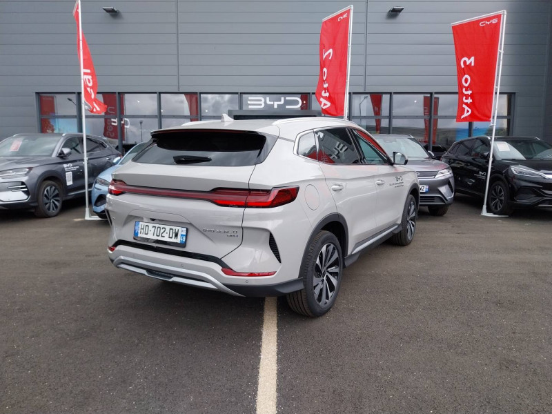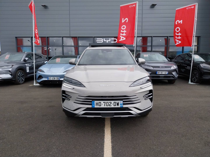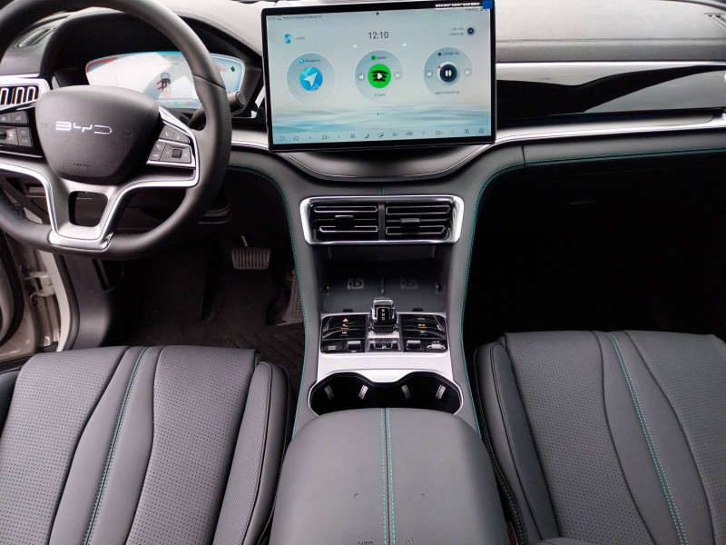 2 x clé intelligente / 4 x lève-vitre à impulsion avec fonction anti-pincement / Accoudoir AR, 2 porte-gobelets / Airbag passager AV avec contacteur de désactivation / Alerte de trafic transversal AR (RCTA) et freinage en cas de trafic transversal AR (RCTB) / Alerte de trafic transversal AV (FCTA) et freinage en cas de trafic transversal AV (FCTB) / Arrêt confort (CST) / Assistance à la sortie de voie (LDA) / Assistance au changement de voie (LCA) / Assistance au maintien sur la voie (LKA) / Assistance d'urgence au maintien dans la voie (ELKA) / Assistance feux de route (HMA) / Assistance hydraulique au freinage (HBA) / Avertissement de collision AR (RCW) / Avertissement de collision AV (FCW) / Avertissement de sortie de voie (LDW) / Avertissement d'ouverture de porte (DOW) / Avertissement prédictif de collision (PCW) / Barres de toit en aluminium / Bouches d'aération AR / Caméra à 360° / Ceinture de sécuritéà limitation de force de siége AR Médian / Charge sans fil de smartphone 2x15W / Chargeur embarqué 11 kW (OBC) / Commande vocale intelligente - "Hi, BYD" / Connectivité 4G embarquée / Contrôle de descente en pente (HDC) / Contrôle de la dynamique du véhicule (VDC) / Contrôle de maintien en côte (HHC) / DAB+ & FM / Décélération contrôlée pour frein de stationnement (CDP) / Détection d'angle mort (BSD) / Détection de la fatigue du conducteur (DFM) indirecte / Détection de présence d'enfant (CPD) / Distribution électronique de la force de freinage (EBD) / Eclairage ambiant, multicolore, réagissant au rythme / Eclairage d'accompagnement (fonction d'allumage anticipé et d'extinction différée des phares) / Eclairage d'accueil dynamique / Eclairages de porte AV à LED / Eclairages de sol de siège AV / Eclairages de sol par les rétroviseurs extérieurs / Ecran tactile rotatif électrique 15,6" / Filtre à air PM2.5 / Fonction Auto Hold du freinage / Fonction Véhicule à chargement (V2L) / Freinage d'urgence automatique (AEB) / Frein de stationnement électronique (EPB) / ISOFIX et i-Size, siège passager AV et sièges AR externes / Jantes en alliage 19" bicolores avec pneus 235/50 R19 / Lampe de lecture à LED AV / Lampe de lecture à LED latérale AR / Modes de conduite : Eco, Normal, Sport, Neige / Pare-brise AV, essuie-glaces a détection de pluie / Pare-brise AV, protection anti-UV, isolation thermique, insonorisation / Pare-soleil AV avec éclairage du miroir / Ports USB AR, 2 x 18 W type C / Ports USB AV, 1 x 18 W type C, 1 x 60 W type C / Prévention de sortie de voie (LDP) / Régulateur de vitesse adaptatif (ACC) et régulateur de vitesse intelligent (ICC) / Rétroviseur à atténuation automatique / Service Cloud - Appli BYD / Servo-frein hydraulique (HBB) / Siège conducteur avec appuie-tête intégré / Siège conducteur, réglable électriquement, 8 directions, mémoire de position / Siège conducteur, ventilé, chauffant, réglage mémorisé / Siège passager AV avec appuie-tête intégré / Siège passager AV avec ventilation et chauffage / Siège passager AV réglable éclectriquement, 4 directions / Sièges AR, appuie-tête réglable manuellement / Sièges AR rabattables séparément - 40:60 / Système antipatinage (TCS) / Système audio Infinity à 10 HP / Système de contrôle anti-renversement (RMI) / Système de priorité au freinage sur les pédales (BOS) / Système de purification d'air PM2.5 / Système de verrouillage automatique / Tableau de bord LCD 12,3" tout TFT / Tablette AR du coffre / Toit ouvrant panoramique avec fonction anti-pincement, avec pare-soleil à réglage électrique / Verrouillage de sécurité enfant mécanique / Vitres AR et lunette AR, vitrage surteinté / Volant chauffant /