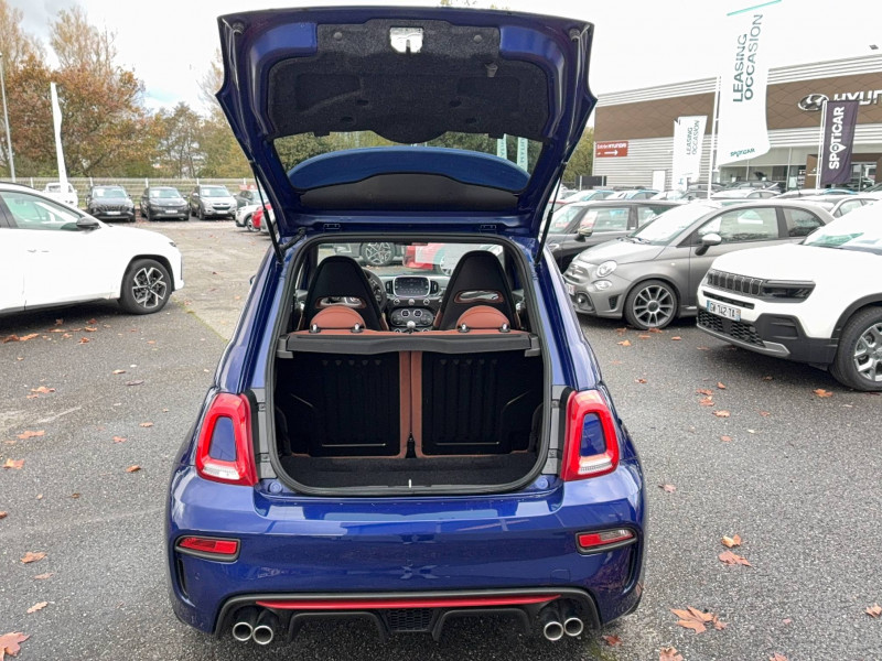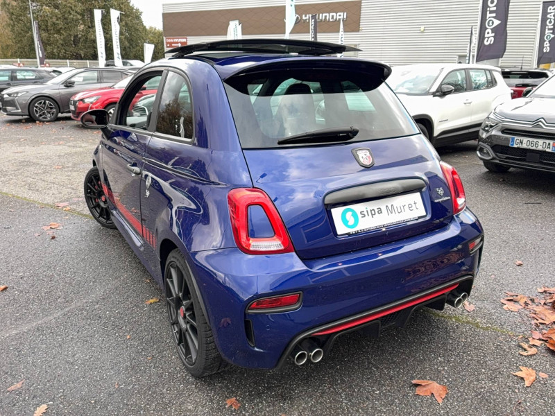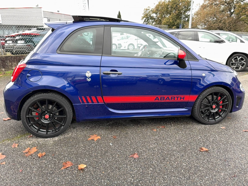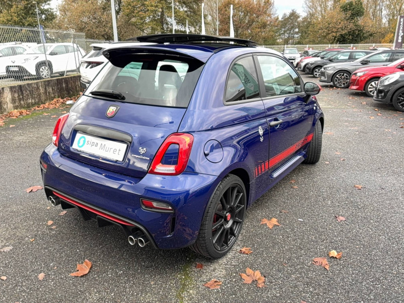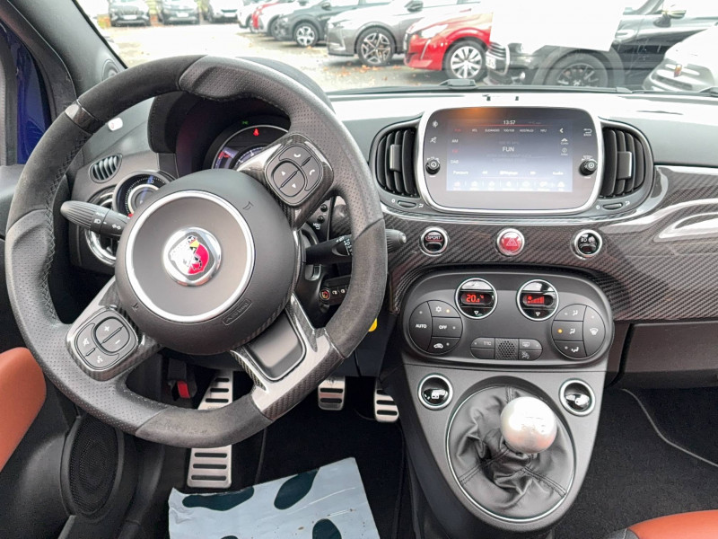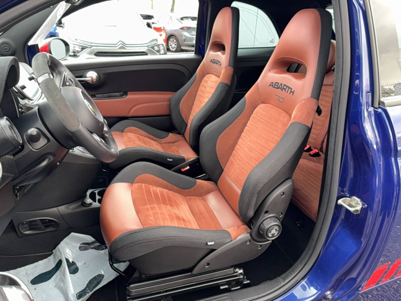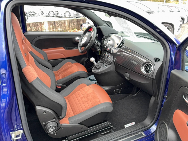 ABS et EBD / Aileron AR ajustable / Airbags conducteur et passager AV, Airbag genoux pour conducteur, Airbags rideaux / Amortisseurs Koni AR avec valve FSD / Amortisseurs Koni AV avec valve FSD / Banquette AR rabattable 50/50 avec 2 appui-tête réglables en hauteur / Disques de freins 305mm x 28mm perforés et auto-ventilés à l'AV et 240mm x 11mm perforés à l'AR / Echappement chromée dual stage Record Monza à quatre sorties / Ecran couleur TFT 7" multifonctions / ESP (Electronic Stability Program) avec MSR (Régulation de l'inertie moteur), AFU (Aide au freinage d'urgence), ASR (Anti-patinage) et Hill Holder (Système d'aide au démarrage en côte) / Etriers de freins Brembo rouges / Filtre à air "powered by BMC" / Jantes alliage 17" Supersport Finition Blanc / Jantes alliage 17" SuperSport Noir Mat / Kit Competizione monté par le distributeur - Filtre à air BMC, bouchons de carburant et huile en alu / Kit Competizione usine - Pommeau de vitesses alu, pédialier métal, seuils de portes avec inscription / Kit de réparation de pneu Fix & Go avec bombe anti-crevaison / Kit élargissement / Kit Turismo/Competizione monté en usine - Pommeau de levier de vitesse alu, pédialier métal, seuils de porte avec inscription Abarth, kit de tapis avec insert eco cuir et fixations alu / Kit Turismo/Competizione monté par le distributeur - Filtre à air BMC, bouchons de carburant et huile en alu / Lame AV en carbone / Logo specifique 70° Anniversario sur ailes AR / Manomètre de mesure de pression du turbo / Mode Sport : fonction qui agit sur les performances moteur, sur le système de freinage, ainsi que sur la direction / Motorisation 180 ch / Peinture pastel extra-série Blanc Gara / Plaque numérotée / Poignées de portes, de coffre, baguette entourant le logo AV, coques de rétroviseurs extérieurs et inserts de boucliers AV/AR gris mat / Sièges baquet (conducteur et passager) Abarth Corsa by Sabelt en tissu / Sièges Sport Abarth tissu / Stickers spécifiques sur capot et toit / Système Uconnect 7'' HD NAV LIVE / TTC (Torque Transfer Control) : contrôle électronique du transfert de couple / Vitres AR et lunette AR non privatives / Volant cuir/alcantara avec point milieu et branches finition carbone