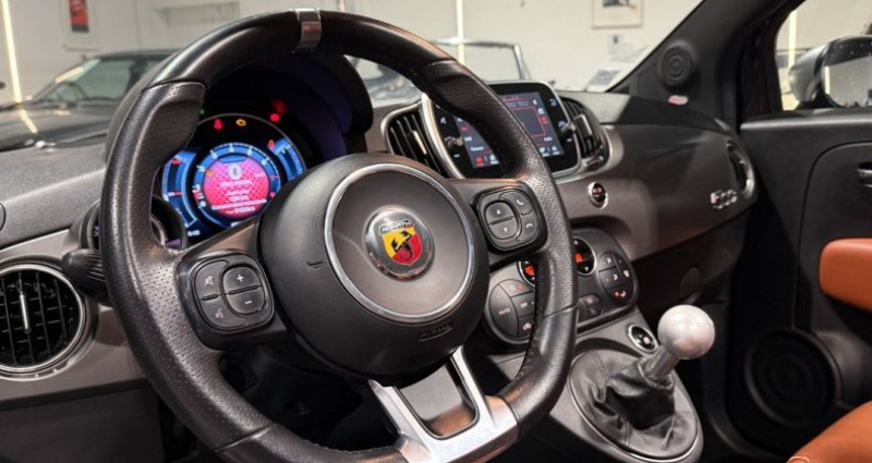 Vroom Automobiles vous propose cette superbe Abarth 595 Cabriolet. Extérieur et Chassis: Kit Turismo/Competizione monté par le distributeur - Filtre à air BMC, bouchons de carburant et huile en alu TTC (Torque Transfer Control) : contrôle électronique du transfert de couple Motorisation 165 ch Jantes alliage 17 GranTurismo Poignées de portes, de coffre, baguette entourant le logo AV et coques de rétroviseurs extérieurs chrome satiné avec inserts de boucliers AV et AR couleur carrosserie Double sortie d'échappement chromée Intérieur: Climatisation automatique Vitres AR privatives et lunette AR non privatives Siège conducteur réglable en hauteur Kit Turismo/Competizione monté en usine - Pommeau de levier de vitesse alu, pédialier métal, seuils de porte avec inscription Abarth, kit de tapis avec insert eco cuir et fixations alu Filtre à air powered by BMC Sièges Sport Abarth cuir Volant cuir avec point milieu et branche inférieur couleur alu Rétroviseurs extérieurs électriques dégivrants Système Link : Apple CarPlay & Android Auto Manomètre de mesure de pression du turbo Ecran couleur TFT 7 multifonctions Uconnect 7'' HD Nav LIVE + Apple CarPlay et Android Auto Sécurité: Radar de recul Airbags conducteur & passager, Airbag genoux conducteur, Airbags rideaux & Latéraux AV Banquette AR rabattable 50/50 avec 2 appui-tête réglables en hauteur Mode Sport : fonction qui agit sur les performances moteur, sur le système de freinage, ainsi que sur la direction Fixations ISOFIX pour les sièges enfants à l'AR Projecteurs antibrouillard intégrés ABS, EBD, MSR, AFU, ASR, ESP et Hill Holder Autre: Amortisseurs Cofap AV avec valve FSD Amortisseurs Koni AR avec valve FSD Disques de freins 284mm x 22mm auto-ventilés à l'AV et 240mm x 11mm à l'AR Etriers de freins jaunes Kit de réparation de pneu Fix & Go avec bombe anti-crevaison Option négative Kit + MO Distributeur Peinture métallisée Noir Scorpione Sellerie cuir Abarth marron avec accoudoirs des panneaux de porte en simili-cuir Système Hi-Fi Beats Audio 7HP 480Watts