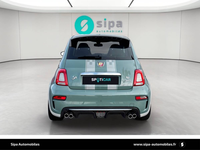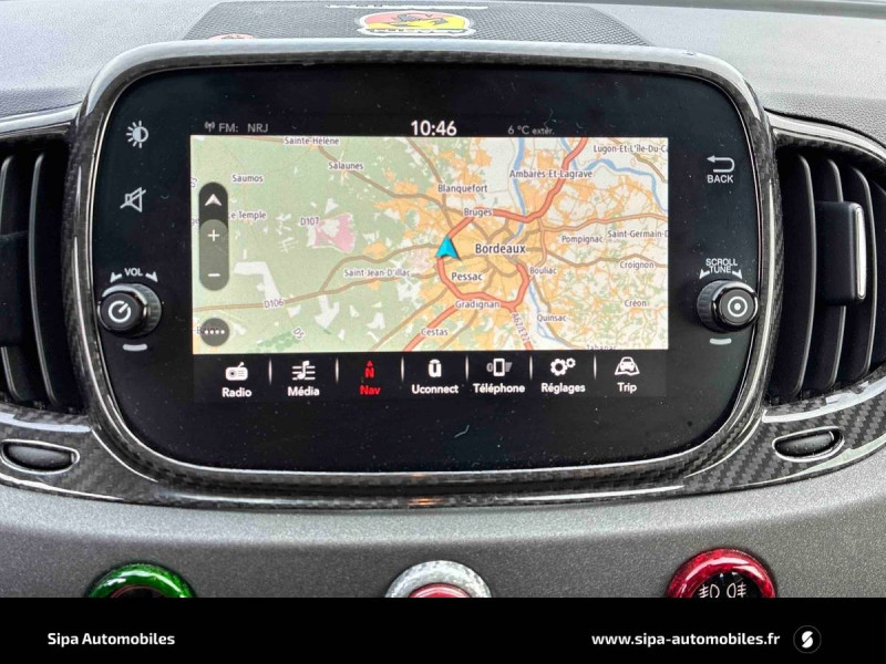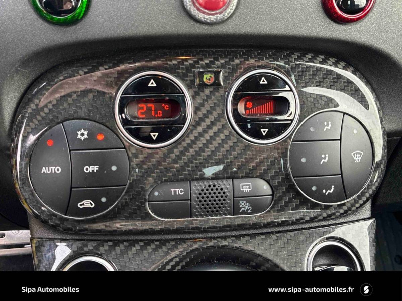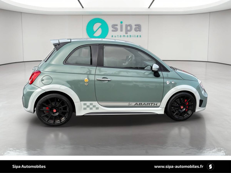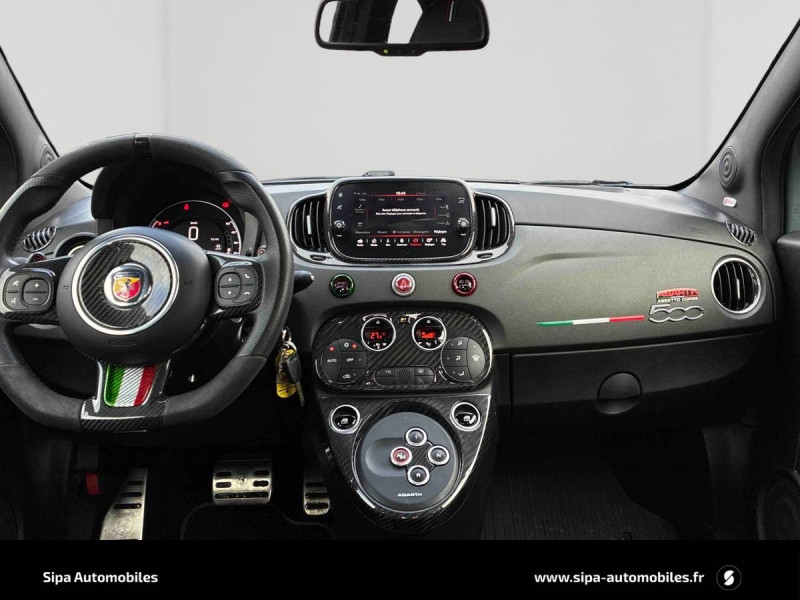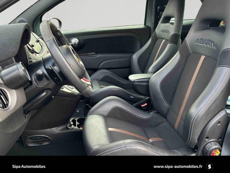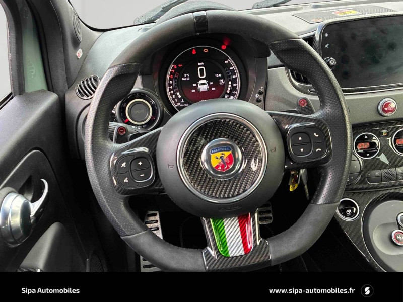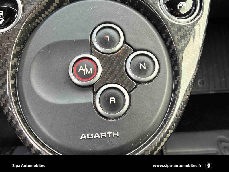 ABS et EBD / Aileron AR ajustable / Airbags conducteur et passager AV, Airbag genoux pour conducteur, Airbags rideaux / Amortisseurs Koni AR avec valve FSD / Amortisseurs Koni AV avec valve FSD / Antenne radio cachée / Banquette AR rabattable 50/50 avec 2 appui-tête réglables en hauteur / Disques de freins 305mm x 28mm perforés et auto-ventilés à l'AV et 240mm x 11mm perforés à l'AR / Echappement chromée dual stage Record Monza à quatre sorties / Ecran couleur TFT 7" multifonctions / ESP (Electronic Stability Program) avec MSR (Régulation de l'inertie moteur), AFU (Aide au freinage d'urgence), ASR (Anti-patinage) et Hill Holder (Système d'aide au démarrage en côte) / Etriers de freins Brembo rouges / Filtre à air "powered by BMC" / Jantes alliage 17" Supersport Finition Blanc / Jantes alliage 17" SuperSport Noir Mat / Kit Competizione monté par le distributeur - Filtre à air BMC, bouchons de carburant et huile en alu / Kit Competizione usine - Pommeau de vitesses alu, pédialier métal, seuils de portes avec inscription / Kit de réparation de pneu Fix & Go avec bombe anti-crevaison / Kit élargissement / Kit EsseEsse Carbone / Kit Turismo/Competizione monté en usine - Pommeau de levier de vitesse alu, pédialier métal, seuils de porte avec inscription Abarth, kit de tapis avec insert eco cuir et fixations alu / Kit Turismo/Competizione monté par le distributeur - Filtre à air BMC, bouchons de carburant et huile en alu / Logo specifique 70° Anniversario sur ailes AR / Manomètre de mesure de pression du turbo / Mode Sport : fonction qui agit sur les performances moteur, sur le système de freinage, ainsi que sur la direction / Motorisation 180 ch / Plaque exclusive One of 1949 / Poignées de portes, de coffre, baguette entourant le logo AV, coques de rétroviseurs extérieurs et inserts de boucliers AV/AR gris mat / Sièges baquet (conducteur et passager) Sabelt en cuir/alcantara noir avec coque carbone / Stickers spécifiques sur capot et toit / Système Uconnect 7'' HD NAV LIVE / TTC (Torque Transfer Control) : contrôle électronique du transfert de couple / Vitres AR et lunette AR non privatives / Volant cuir/alcantara avec point milieu et branches finition carbone