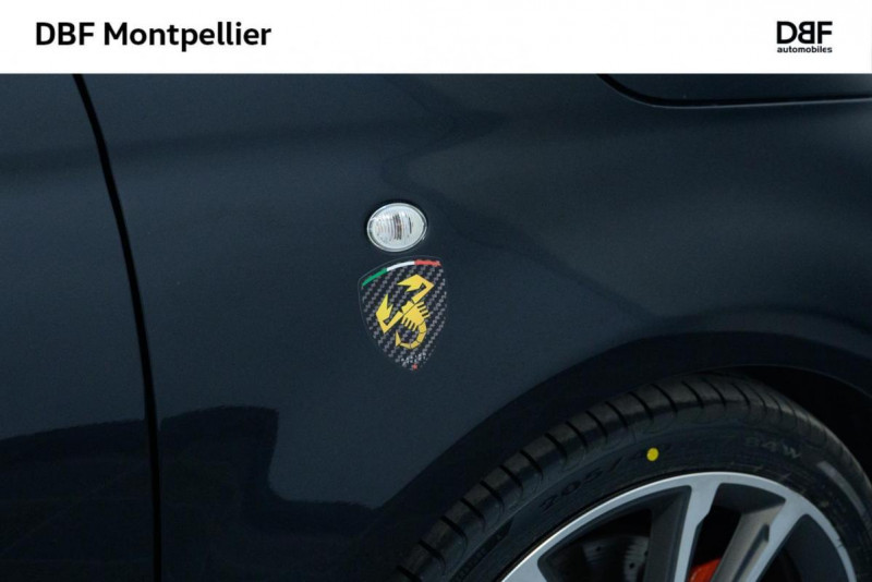 ABS et EBD / Fixations ISOFIX pour les sièges enfants à l'AR / Double sortie d'échappement chromée / Manomètre de mesure de pression du turbo / TTC : contrôle électronique du transfert de couple / Mode Sport : fonction qui agit sur les performances moteur / sur le système de freinage / ainsi que sur la direction / Rétroviseurs extérieurs électriques et dégivrants / Filtre à air powered by BMC / Disques de freins 284mm x 22mm auto-ventilés à l'AV et 240mm x 11mm à l'AR / Ecran couleur TFT 7 multifonctions / Amortisseurs Cofap AV avec valve FSD / Amortisseurs Koni AR avec valve FSD / Poignées de portes / de coffre / baguette entourant le logo AV et coques de rétroviseurs extérieurs chrome satiné avec inserts de boucliers AV et AR couleur carrosserie / Banquette AR rabattable 50/50 avec 2 appui-tête réglables en hauteur / Kit de réparation de pneu Fix & Go avec bombe anti-crevaison / Sellerie cuir Abarth marron avec accoudoirs des panneaux de porte en simili-cuir / Sellerie cuir Abarth noir avec accoudoirs des panneaux de porte en simili-cuir / Sellerie cuir Abarth rouge avec accoudoirs des panneaux de porte en simili-cuir / Kit Turismo/Competizione monté en usine - Pommeau de levier de vitesse alu / pédialier métal / seuils de porte avec inscription Abarth / kit de tapis avec insert eco cuir et fixations alu / Kit Turismo/Competizione monté par le distributeur - Filtre à air BMC / bouchons de carburant et huile en alu / Volant cuir avec point milieu et branche inférieur couleur alu / Sièges Sport Abarth cuir / Vitres AR et lunette AR non privatives / Motorisation 165 ch / Projecteurs Xénon avec lave-phares / Etriers de freins rouges / Système Hi-Fi Beats Audio 7HP 480Watts / Peinture métallisée Noir Scorpione