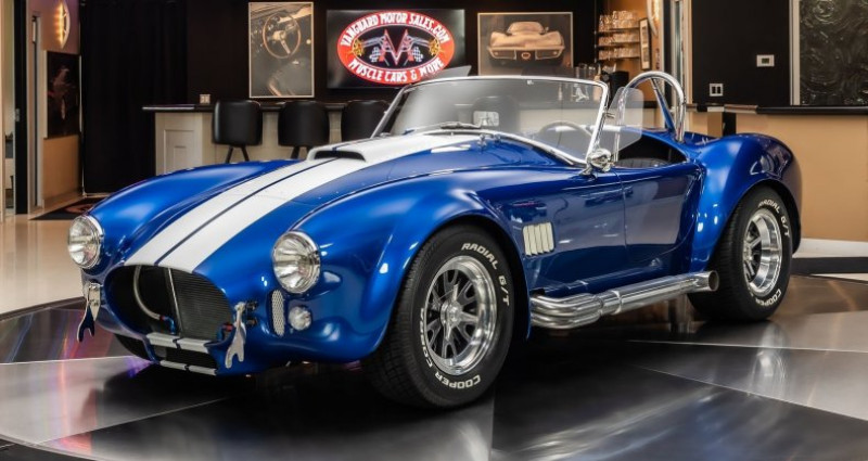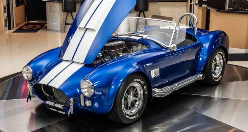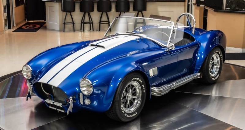 Ce 1965 Shelby Cobra Superformance, numéro de série SP03763, est un véhicule rare et bien conservé, avec moins de 300 milles sur la chaussée. Il est fini en bleu avec des bandes blanches, et sa calandre est surmontée de bandes chromées. Il est équipé d'une selle à trois branches en bois à volant, de ceintures de sécurité de rangée latérale et d'un tableau de bord Smiths. Sous le capot se trouve un moteur Roush 427 ci SR V8 avec un carburateur Holley, et le changement de vitesse est un Tremec à cinq vitesses avec rapport de réduction de 3, 73:1. Les freins, les rétroviseurs et les roues sont en acier poli. Le véhicule est équipé de suspensions indépendantes aux avant et arrière, d'un réservoir d'essence recouvert de béton et d'un essieu explosion-proof. Toute l'extérieur du véhicule, y compris le châssis et les pièces inférieures, est en parfait état.. Ce descriptif est basé sur les éléments communiqués par le propriétaire avec un traitement assisté. Merci pour votre indulgence en cas de formulation perfectible. Provenance : Michigan. Disponibilité : 7 semaines, clés en main. 136 000 € tout compris (importation, taxes, procédure d'immatriculation). Annonce publiée le 03/10/2025