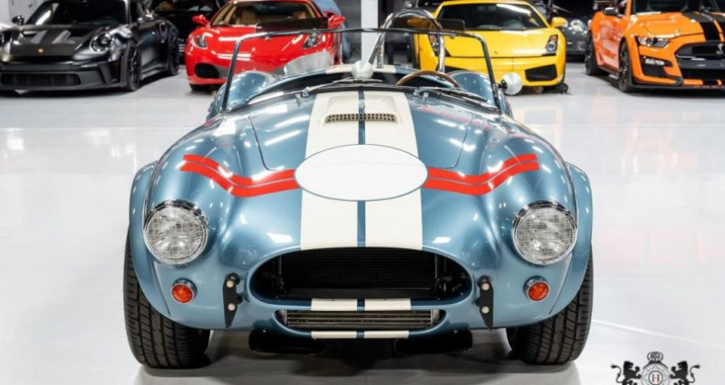 - Marque : Superformance - Modèle : Cobra MKII Replica - Année : 1963 - Couleur extérieure : Viking Blue (avec bande blanche Wimbeldon White et bande rouge FIA) - Couleur intérieure : Noir - VIN : DRMVB0000159911M0 - Moteur : Ford 302 High Performance (cylindrée augmentée à 354 pouces cubes) - Boîte de vitesses : Tremec 600 5-SPeed Manual - Kilométrage : 288 miles - État : Utilisé, avec garantie de condition écrite. Provenance : Arizona. Disponibilité : environ 7 semaines, clés en main. 99 500 € tout compris (importation, taxes, procédure d'immatriculation). Annonce publiée le 10/12/2025