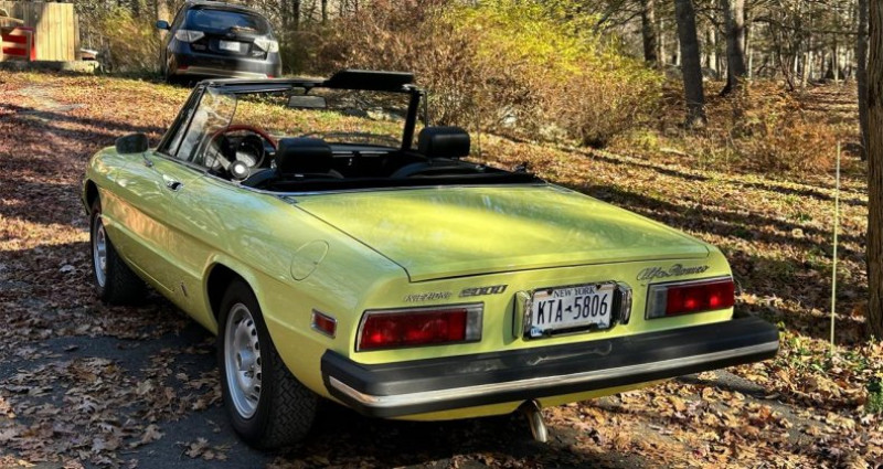 1977 Alfa Romeo Spider Veloce 2000 Inerzione Ancienne version originale Miles originaux : 22 100 Couleur extérieure : Giallo Pogata jaune Intérieur : noir Intérieur série 2 : belle, avec cadres chromés et tableau de bord classique Alfa Romeo État de la peinture : belle État intérieur : excellent Capot convertible : neuf Moteur fonctionne bien Roues neuves et pneus Pirelli CN65 corrects pour la période Spica récemment réglé et module de démarrage à froid remplacé Toutes les modifications de fluides et réglages effectués il y a 1000 miles Garage tout au long de sa vie Peut-être l'un des meilleurs exemplaires non restaurés série 2 disponibles.. Provenance : North Carolina, USA. Disponibilité : environ 7 semaines, clés en main. 23 500 € tout compris (import, taxes, procédure d'immatriculation). Annonce publiée le 02/12/2025
