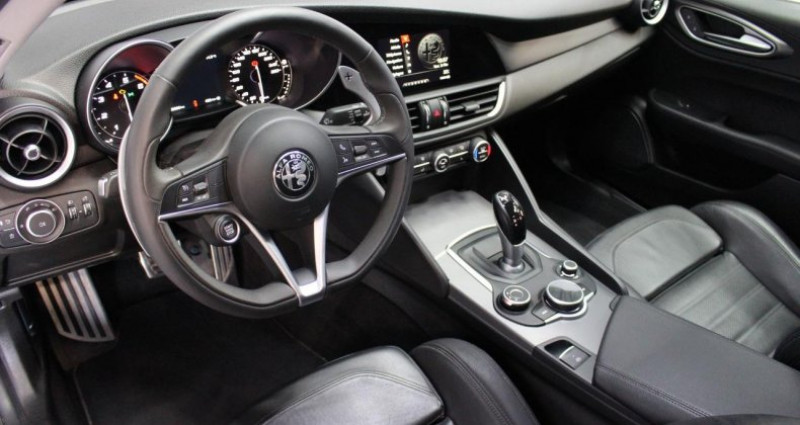 ======= OPTIONS ======= Etriers de frein jaunes Palettes de changement de rapports au volant Radio Numérique DAB Système Navigation 3D 8,8 & Radio Numérique & Instrumentation Bord 7 avec Apple CarPlay et AndroidAuto ======= EQUIPEMENTS DE SERIE ======= Accoudoir arrière + banquette arrière rabattable Aide au stationnement arrière Alfa D.N.A. Evo Assistance au freinage d'urgence Bouton Start sur le volant Climatisation automatique bi-zone Dark-Line (moulures extérieures noires) Feux arrières à LED Feux avant éclairage diurne Led Frein de parking électronique Instrumentation de bord TFT 3,5 en couleur Jantes alliage 18 Pack Assistance Pack Sièges Electriques Pare-chocs Veloce Pédalier en aluminium Phares Bi-Xénon 25W Pneus Runflat Power bolster Régulateur de vitesse Rétroviseur intérieur électrochrome Rétroviseurs extérieurs rabattables électriquement Rotory Pad (Control Système Media) Sièges chauffants Sièges sport en cuir Système Alfa Connect Nav 6,5 Système d'alerte anti-collisions (FWC) avec détection piétons Système d'alerte de franchissement de ligne blanche Système de freins integré (IBS) Vitres arrières surteintées Volant en cuir chauffant Nb. Vitesses : 8 Conso Mixte : l/100