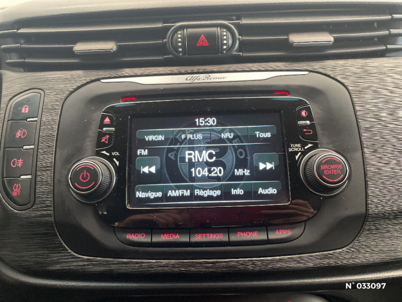 Capteur de perte de pression des pneumatiques / Roue de secours taille réduite 16"/17" / Peinture Pastel Rouge Alfa / Jantes alliage 17" design Super / Alfa DNA Autoradio CD MP3 + 6 HP / Sellerie Tissu Noir avec logo sur appui-tête / Insert planche de bord Noir Mat / Stickers exclusifs Rouge Alfa / Tapis de sol / Accoudoir AV avec espace de rangement / Poignées des portes chrome satiné / Direction active Dual Pinion / Kit fumeur avec allume-cigare / Projecteurs antibrouillards AV avec application chromée / VDC + Q2 électronique / Projecteurs AV avec finition sombre / Jupes latérales Sport / Coques de rétroviseurs extérieurs Chrome Satiné / Rétroviseur intérieur photochromatique / Pack Visibilité