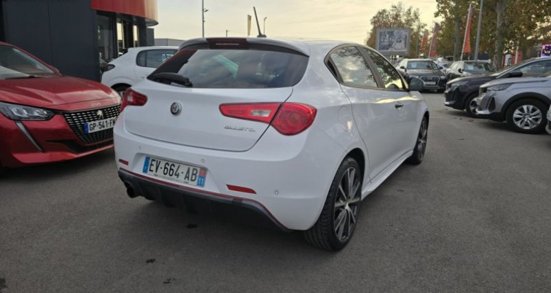 Alfa Romeo Giulietta 1.4 TB MultiAir 170 ch SetS TCT Lusso berline, blanc, 9 cv, 5 portes, première mise en circulation le 14/02/2018, garantie 3 mois. 5 places OPTIONS ET ÉQUIPEMENTS : Audio - Télécommunications : - Services UConnect Live - Bluetooth - CD - GPS - auto-radio : CD mp3 - ecran tactile - lecteur carte SD - système de navigation Conduite : - Capteurs de pluie et de luminosité - Start & Stop - allumage automatique des feux - pack visibilite - régulateur de vitesse Extérieur : - Chrome line entourage de vitres laterales chromé - Radar de parking AV - jantes : alliage - jantes alliage - radar arrière de détection d'obstacles - radar d'aide au stationnement - rétroviseurs dégivrants - rétroviseurs rabattables - rétroviseurs électriques Intérieur : - Direction active Dual Pinion - Réglage en hauteur du siège passager - Rétroviseur intérieur photochromatique - Sièges AV avec réglage lombaire électrique - Trappe à skis - Pack fumeur - accoudoir central - accoudoir central arrière - climatisation : automatique - climatisation multi zone - ordinateur de bord - trappe à ski - vitres avant éléctriques - vitres électriques - volant cuir Pack : - Coques de rétroviseurs extérieurs Chrome Satiné - Insert planche de bord Noir Mat - Jupes latérales Sport - Pack Business - Poignées des portes chrome satiné - Projecteurs AV avec finition sombre - Seuils de portes en aluminium - VDC + Q2 électronique - Accoudoir AV avec espace de rangement - appuis-tête arrière - nombre de rapports : 6 vitesses - tapis de sol Sécurité : - Airbags - Capteur de perte de pression des pneumatiques - phares antibrouillard - roue de secours Autres équipements et informations : - Chrome line (encadrement des vitres chromé) - Peinture Pastel Rouge Alfa - Stickers exclusifs Rouge Alfa - Classe Crit'air : 1 - MP3 - Puissance kilowatt : 125 kw - puissance réelle : 170 ch - émission CO2 : 114 g/km Référence annonce : 118VO010670