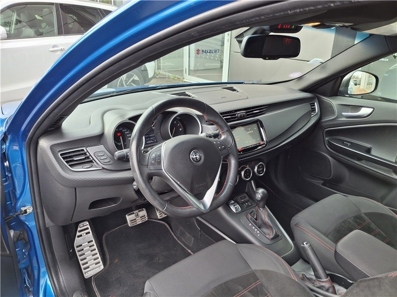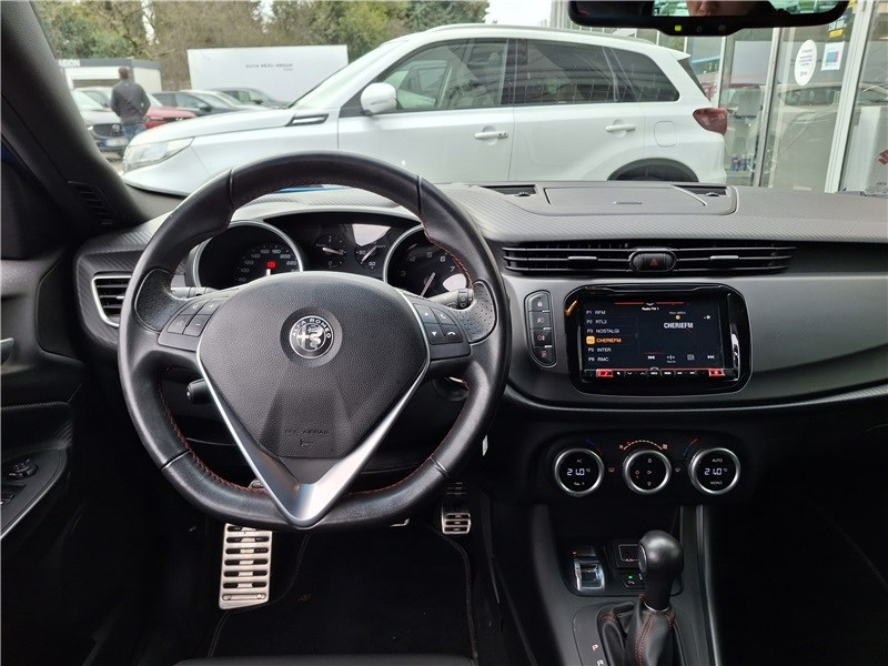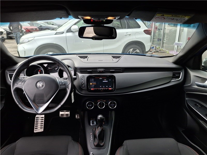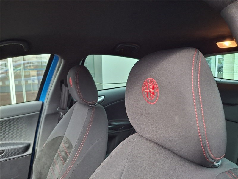 Accoudoir AV avec espace de rangement / Accoudoir central AR avec 3e appuie-tête et trappe à ski / Alfa DNA Autoradio CD MP3 + 6 HP / Capteur de perte de pression des pneumatiques / Chrome line entourage de vitres laterales chromé / Contour de planche de bord et panneaux de porte effet carbone / Contour de planche de bord et panneaux de porte effet carbone / Contour de vitres omission chrome / Coques de rétroviseurs extérieurs Chrome Satiné / Direction active Dual Pinion / Echappement Sport / Echappement Sport / Eléments style Dark Chrome: rétroviseurs, calandre, antibrouillards / Extracteur Sport / Extracteur Sport / Freins Sport Brembo avec étriers rouges / GPS Uconnect 6.5" avec cartographie et Uconnect Live / Insert planche de bord Noir Titane / Jantes alliage 18" design Design TI / Jupes latérales Sport / Kit fumeur avec allume-cigare / Pack Veloce 18" / Pack Veloce 18" design Competizione Dark Chrome ou Design TI / Pack Veloce 18" design Competizione Dark Chrome ou Design TI / Pack Visibilité / Pédalier en aluminium sport / Peinture Pastel Rouge Alfa / Poignées des portes chrome satiné / Projecteurs antibrouillards AV avec application chromée / Projecteurs AV avec finition sombre / Projecteurs AV avec inserts effet carbone / Réglage en hauteur du siège passager / Rétroviseur intérieur photochromatique / Roue de secours taille réduite 16"/17" / Sellerie Sport Tissu/Alcantara avec surpiqûres rouges / Sellerie Tissu Noir avec logo sur appui-tête / Seuils de portes en aluminium / Sièges AV avec réglage lombaire électrique / Spoiler AV avec liseré rouge Alfa / Spoiler AV avec liseré rouge Alfa / Stickers exclusifs Rouge Alfa / Suspensions Sport / Suspensions Sport / Système de navigation Uconnect 6.5" à cartographie Europe et services Live / Tapis de sol / Trappe à skis / VDC + Q2 électronique / Volant avec méplat et surpiqures rouges / Volant Sport avec méplat et surpiqures rouges