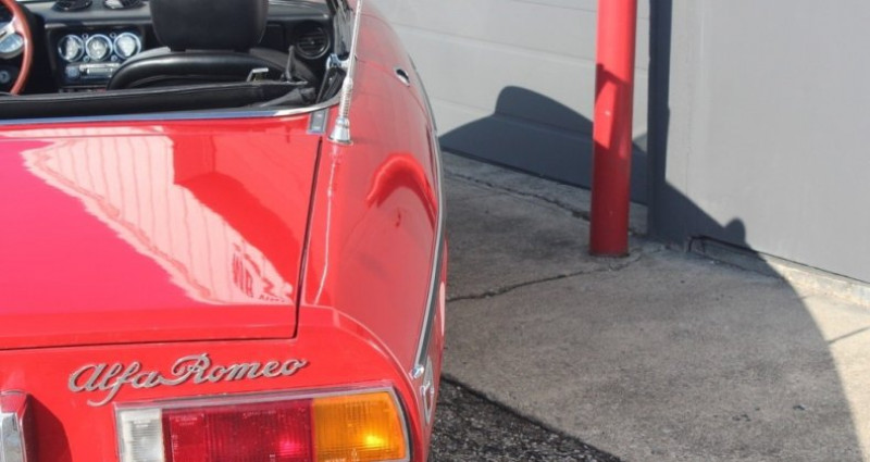 - Année: 1974 - Marque: Alfa Romeo - Modèle: Spider - Couleur: Rouge - Intérieur: Noir - Kilométrage: 112 111 - Transmission: Non spécifié - Moteur: Non spécifié - Boîte de vitesses: Non spécifiée - État général: Corps bon, peinture bien conservée à l'exception de quelques petites taches visibles sur les photos. Intérieur en très bon état, toit doux récemment remplacé. Volant bois très agréable. Il y a une fissure en bas de la vitre arrière et sur le tableau de bord près du ventilateur. - Travaux récents: Remplacement récent du toit doux. - Accessoires: Roues de secours et jack inclus. - État mécanique: Fonctionne et conduit bien.. Provenance : Ohio. Disponibilité : environ 7 semaines, clés en main. 26 000 € tout compris (importation, taxes, procédure d'immatriculation). Annonce publiée le 14/12/2025