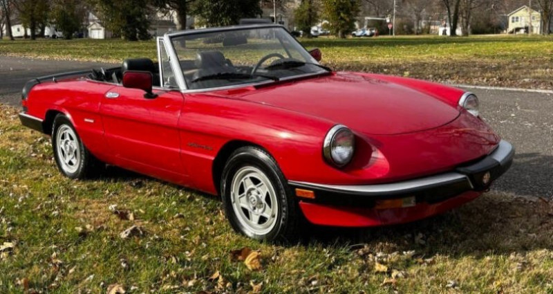- Marque : Alfa Romeo - Modèle : Spider Veloce - Année : 1988 - Moteur : 2.0L I4 - Injection - Transmission : Boîte de vitesses à 5 rapports - Propulsion : RWD (Propulsion arrière) - Carburant : Essence - Couleur extérieure : Rouge vif - Intérieur : Noir cuir avec étoffe rouge - État : Bien conservé, passe la plupart de son temps en AZ, corps solide et peinture bien conservée, intérieur bien préservé.. Provenance : Missouri. Disponibilité : environ 7 semaines, clés en main. 21 500 € tout compris (importation, taxes, procédure d'immatriculation). Annonce publiée le 03/01/2026