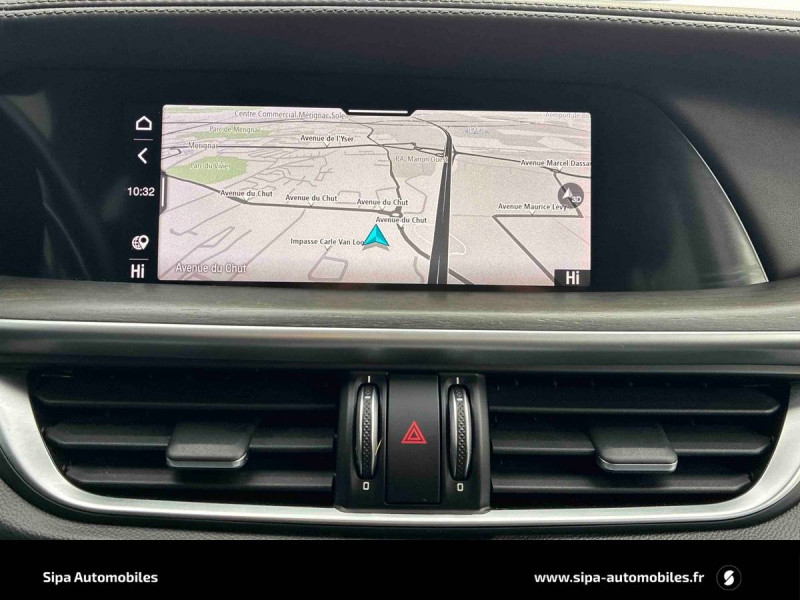 Alfa Connected Services (My Assistant, My Remote, My Car, My Navigation) / Chrome Line - contour de vitres chromée / Contour de vitres chromé / Détecteurs des angles morts actifs / Double sortie d'échappement / Eclairage diurne (signature lumineuse) à LED / Feux adaptatifs anti-éblouissement / Fixation siège enfant de type Isofix / Inserts en bois véritable sur planche de bord et tunnel central / Instrumentation de bord 7" TFT couleur / Kit de réparation pneumatiques Fix & Go / Kit peinture spécifique / Ouverture des portes mains libres avec éclairage des poignées de porte / Pack Driver Assistance Plus / Pack Eclairage / Pack Performance / Pack Sound Theatre / Pédalier aluminium sport / Planche de bord en cuir avec surpiqûres rouges et gris / Planche de bord et panneau de portes recouverts de cuir / Prise USB AV + 2 prises USB AR / Projecteurs Bi-Xénon 35W auto-directionnels avec lave-phares / Réglages sièges AV électriques 8 positions + lombaires 4 positions à mémoire côté conducteur / Renfort insonorisation / Rotary Pad / Sélecteur de mode de conduite Alfa DNA / Seuils de portes en aluminium / Sièges à réglage manuel 6 positions / Système Alfa Connect (Radio, MP3, Aux-in, Bluetooth) avec écran panoramique 8,8" tactile, Navigation 3D et cartographie Europe / Système d'aide à la descente Hill Descent Holder / Système d'alertes anticollisions (FCW) avec détection piétons / Système de détection des angles morts avec détection d'obstacles transversaux actif / Système de freins intégré (IBS) / Tapis de sol noirs / Vitrage feuilleté / Volant Luxury chauffant