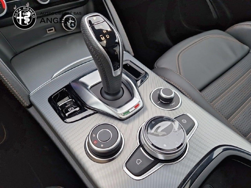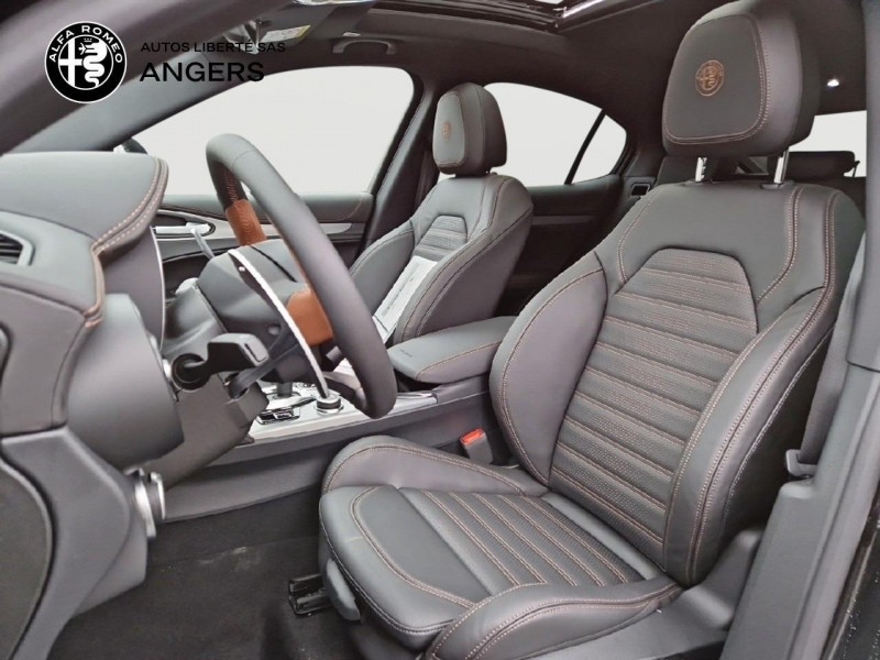 ABS, ESP, TCS / Alfa Connected Services / Barres stabilisatrices renforcées / Boîte automatique 8 rapports / Buses de lave-glaces chauffantes / Caméra de recul avec lignes indicatrices / Ciel de toit sombre / Cockpit digital 12.3'' Personnalisable / Contour de vitres Noir Vulcano / Coques de rétroviseurs avec insert drapeau italien / Coques de rétroviseurs noires / Diffuseur AR Veloce / Double sortie d'échappement noir / Détection de fatigue du conducteur / Eclairage adaptatif (feux de croisement/feux de route) / Etriers de frein Brembo noirs avec signature Oro / Fixation siège enfant de type Isofix / Intérieur avec inserts et surpiqûres Havane / Kit de réparation pneumatiques Fix & Go / Palettes au volant en aluminium