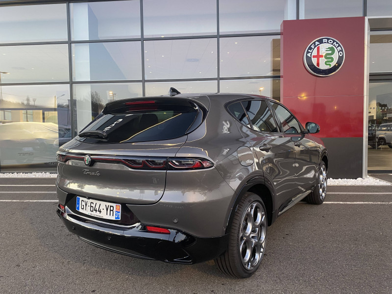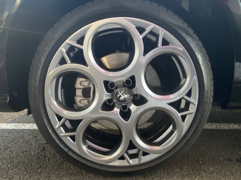 6 airbags (conducteur et passagers AV, latéraux, rideaux, genoux conducteur) / Accoudoir AV intégré dans le tunnel central / Alerte de collision AV / Alerte de rappel de présence sur les sièges AR / Alfa Connect Services / Assistant de vitesse intelligent (ISA) / Banquette AR 60/40 avec trappe à ski / Câble de recharge Type 2 Mode 3 / Caméra de recul avec lignes dynamiques / Capteur de pression des pneumatiques TPMS / Ciel de toit sombre / Combiné d'instruments digital 12,3" Cannochiale / Coques de rétroviseurs Noir brillant / Détection de fatigue du conducteur / Diffuseur noir / Enjoliveurs de moyeux Alfa Romeo en blanc et noirs / Freinage d'urgence autonome urbain / Jantes alliage 18" Ti Avec pneumatiques été A+. Dimensions : 235/50 R18 / Jupes latérales noires / Kit anti-crevaison / Lame AV noir / Navigation Europe / Pédalier en aluminium / Peinture Pastel Rouge Alfa / Prise USB AR type A + C (Charge) / Prise USB AV type A + C (Charge et données) / Projecteurs Full-Led avec signature lumineuse 3+3 / Régulateur de vitesse adaptatif intelligent avec lecture des panneaux couplé avec navigation / Régulateur et limiteur de vitesse intelligent avec lecture des panneaux / Rétroviseur intérieur électrochrome / Scudetto noir / Sélecteur de mode de conduite DNA (3 modes + ESC OFF) / Sellerie Tissu Premium Logo "Biscione" / Système d'info-divertissement 10,2" tactile / Vitres AR privatives / Vitres AV/AR électriques avec fonction anti-pincement / Volant sport en cuir pleine fleur avec bouton de démarrage