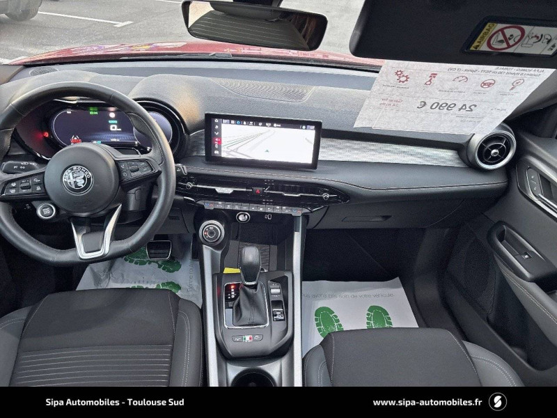 6 airbags (conducteur et passagers AV, latéraux, rideaux, genoux conducteur) / Accoudoir AV intégré dans le tunnel central / Alerte de collision AV / Alerte de rappel de présence sur les sièges AR / Alfa Connected Services / Banquette AR 60/40 avec trappe à ski / Caméra de recul avec lignes dynamiques / Ciel de toit sombre / Combiné d'instruments digital 12,3" Cannochiale / Coques de rétroviseurs Noir brillant / Détection de fatigue du conducteur / Enjoliveurs de moyeux Alfa Romeo en blanc et noirs / Freinage d'urgence autonome urbain / Jantes alliage 18" Ti Avec pneumatiques été A+ / Kit anti-crevaison / Navigation Europe / Pédalier en aluminium / Peinture Pastel Rouge Alfa / Prise USB AR type A + C (Charge) / Prise USB AV type A + C (Charge et données) / Projecteurs Full-Led avec signature lumineuse 3+3 / Régulateur de vitesse adaptatif intelligent avec lecture des panneaux couplé avec navigation / Régulateur et limiteur de vitesse intelligent avec lecture des panneaux / Rétroviseur intérieur électrochrome / Scudetto noir / Sélecteur de mode de conduite DNA (3 modes + ESC OFF) / Sellerie Tissu Premium Logo "Biscione" / Système d'info-divertissement 10,2" tactile / Vitres AV/AR électriques avec fonction anti-pincement / Volant sport en cuir pleine fleur avec bouton de démarrage