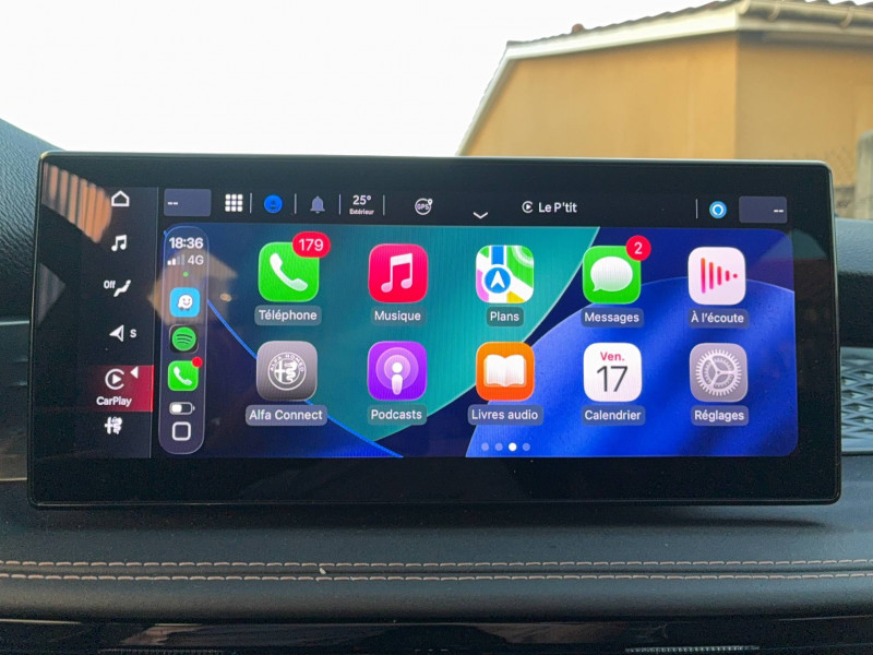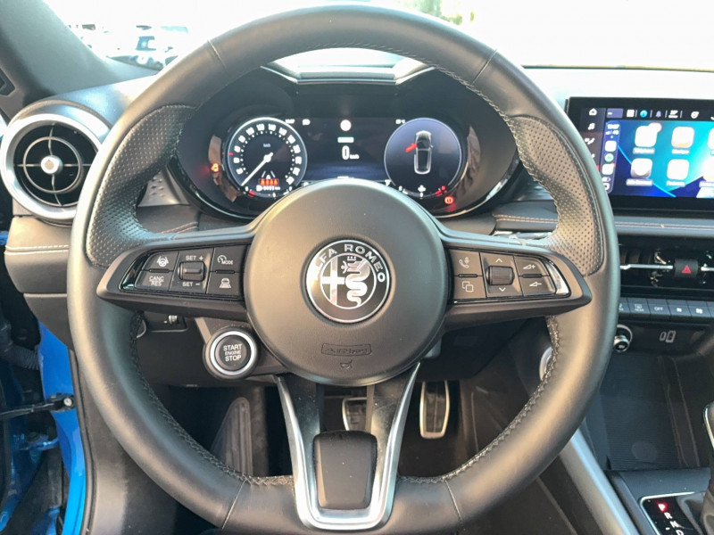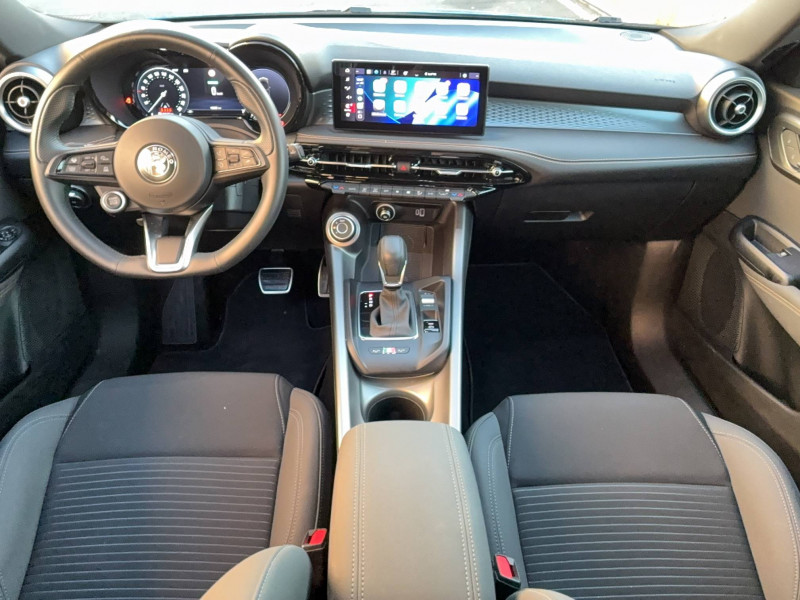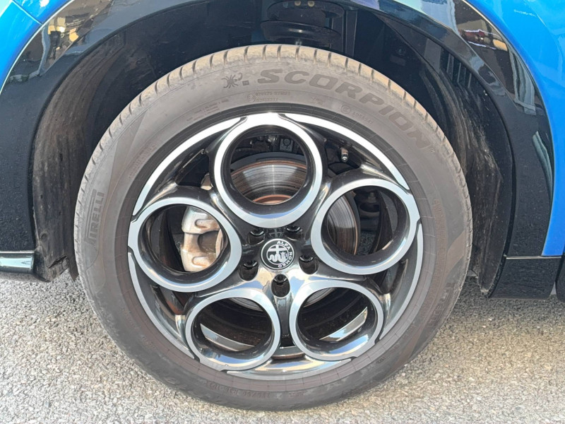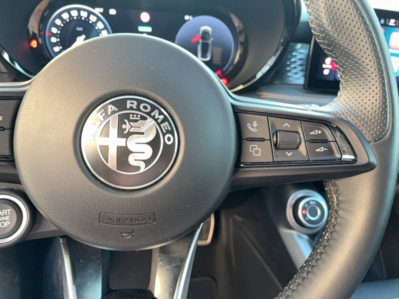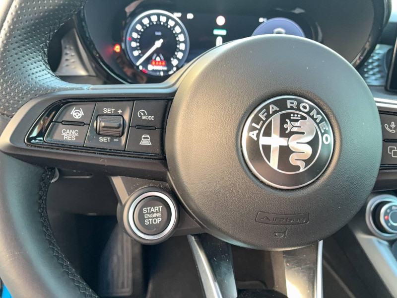 6 airbags (conducteur et passagers AV, latéraux, rideaux, genoux conducteur) / Accoudoir AV intégré dans le tunnel central / Alerte de collision AV / Alerte de rappel de présence sur les sièges AR / Alfa Connected Services / Banquette AR 60/40 avec trappe à ski / Caméra de recul avec lignes dynamiques / Ciel de toit sombre / Combiné d'instruments digital 12,3" Cannochiale / Coques de rétroviseurs Noir brillant / Détection de fatigue du conducteur / Enjoliveurs de moyeux Alfa Romeo en blanc et noirs / Freinage d'urgence autonome urbain / Jantes alliage 18" Ti Avec pneumatiques été A+ / Kit anti-crevaison / Navigation Europe / Pédalier en aluminium / Peinture Pastel Rouge Alfa / Prise USB AR type A + C (Charge) / Prise USB AV type A + C (Charge et données) / Projecteurs Full-Led avec signature lumineuse 3+3 / Régulateur de vitesse adaptatif intelligent avec lecture des panneaux couplé avec navigation / Régulateur et limiteur de vitesse intelligent avec lecture des panneaux / Rétroviseur intérieur électrochrome / Scudetto noir / Sélecteur de mode de conduite DNA (3 modes + ESC OFF) / Sellerie Tissu Premium Logo "Biscione" / Système d'info-divertissement 10,2" tactile / Vitres AV/AR électriques avec fonction anti-pincement / Volant sport en cuir pleine fleur avec bouton de démarrage