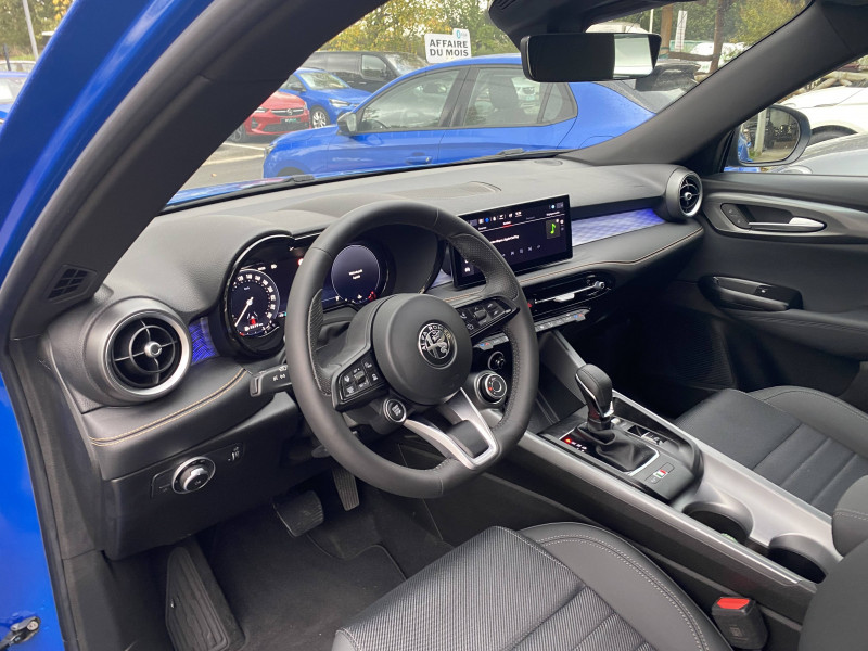6 airbags (conducteur et passagers AV, latéraux, rideaux, genoux conducteur) / Accoudoir AV intégré dans le tunnel central / Alerte de collision AV / Alerte de rappel de présence sur les sièges AR / Alfa Connected Services / Antenne type requin / Banquette AR 60/40 avec trappe à ski / Caméra de recul avec lignes dynamiques / Ciel de toit sombre / Combiné d'instruments digital 12,3" / Coques de rétroviseurs Noir brillant / Détection de fatigue du conducteur / Eclairage d'ambiance 5 couleurs / Feux de route automatiques / Freinage d'urgence autonome urbain / Jantes alliage 18" Ti Avec pneumatiques été / Kit anti-crevaison / Navigation Europe / Peinture Pastel Rouge Alfa / Prises 12V (console centrale et coffre) / Prise USB AR type A + C (Charge) / Prise USB AV type A + C (Charge et données) / Projecteurs Matrix Full-Led adaptatifs avec fonction anti-brouillard / Réglage des lombaires électrique 4 positions du conducteur / Régulateur de vitesse adaptatif intelligent avec lecture des panneaux couplé avec navigation / Régulateur et limiteur de vitesse intelligent avec lecture des panneaux / Rétroviseur intérieur électrochrome / Scudetto finition chromé / Sélecteur de mode de conduite DNA (3 modes + ESC OFF) / Sellerie AlfaTec/Tissu Carbonne / Système d'info-divertissement 10,2" tactile / Tapis de sol AV/AR / Vitres AV/AR électriques avec fonction anti-pincement / Volant sport en cuir pleine fleur avec bouton de démarrage