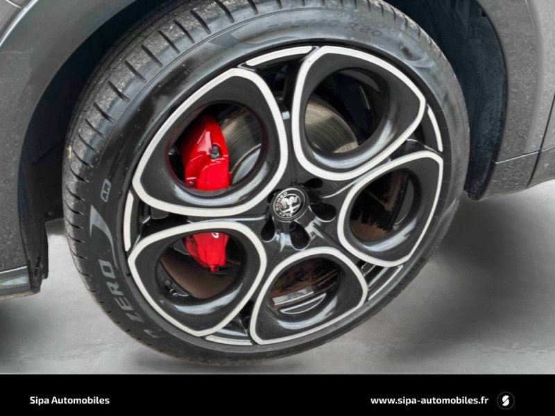 6 airbags (conducteur et passagers AV, latéraux, rideaux, genoux conducteur) / Accoudoir AV intégré dans le tunnel central / Alerte de collision AV / Alerte de rappel de présence sur les sièges AR / Alfa Connected Services / Antenne type requin / Badge Competizione / Banquette AR 60/40 avec trappe à ski / Caméra de recul avec lignes dynamiques / Ciel de toit sombre / Combiné d'instruments digital 12,3" / Coques de rétroviseurs Noir brillant / Détection de fatigue du conducteur / Eclairage d'ambiance 5 couleurs / Ecran infodivertissements 10,25" avec Navigation / Etriers de freins BREMBO peints en rouge / Feux de route automatiques / Freinage d'urgence autonome urbain / Jantes alliage 20" Speciale Scuro Avec pneumatiques été / Kit anti-crevaison / Navigation Europe / Palettes de changement de vitesse en aluminium / Pédalier en aluminium / Peinture Pastel Rouge Alfa / Prises 12V (console centrale et coffre) / Prise USB AR type A + C (Charge) / Prise USB AV type A + C (Charge et données) / Projecteurs Matrix Full-Led adaptatifs avec fonction anti-brouillard / Réglage des lombaires électrique 4 positions du conducteur / Régulateur de vitesse adaptatif intelligent avec lecture des panneaux couplé avec navigation / Régulateur et limiteur de vitesse intelligent avec lecture des panneaux / Rétroviseur intérieur électrochrome / Rétroviseurs et V de calandre noirs / Scudetto finition Dark Miron / Sélecteur de mode de conduite DNA (3 modes + ESC OFF) / Seuils de portes en aluminium / Système d'info-divertissement 10,2" tactile / Tapis de sol AV/AR / Vitres AR privatives / Vitres AV/AR électriques avec fonction anti-pincement / Volant sport en cuir pleine fleur avec bouton de démarrage