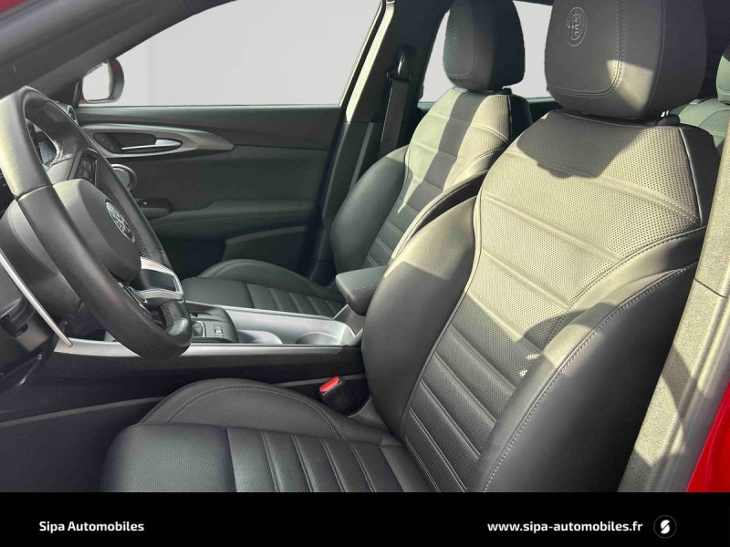 6 airbags (conducteur et passagers AV, latéraux, rideaux, genoux conducteur) / Accoudoir AV intégré dans le tunnel central / Alerte de collision AV / Alerte de rappel de présence sur les sièges AR / Alfa Connected Services / Antenne type requin / Banquette AR 60/40 avec trappe à ski / Caméra de recul avec lignes dynamiques / Ciel de toit sombre / Combiné d'instruments digital 12,3" / Coques de rétroviseurs Noir brillant / Détection de fatigue du conducteur / Eclairage d'ambiance 5 couleurs / Enjoliveurs de moyeux Alfa Romeo en blanc et noirs / Etriers de freins BREMBO peints en rouge / Feux de route automatiques / Freinage d'urgence autonome urbain / Jantes alliage 19" Veloce Avec pneumatiques été / Kit anti-crevaison / Kit de carroserie finition Dark Miron / Navigation Europe / Palettes au volant en aluminium / Palettes de changement de vitesse en aluminium / Pédalier en aluminium / Peinture Pastel Rouge Alfa / Prises 12V (console centrale et coffre) / Prise USB AR type A + C (Charge) / Prise USB AV type A + C (Charge et données) / Projecteurs Matrix Full-Led adaptatifs avec fonction anti-brouillard / Réglage des lombaires électrique 4 positions du conducteur / Régulateur de vitesse adaptatif intelligent avec lecture des panneaux couplé avec navigation / Régulateur et limiteur de vitesse intelligent avec lecture des panneaux / Rétroviseur intérieur électrochrome / Scudetto finition Dark Miron / Sélecteur de mode de conduite DNA (3 modes + ESC OFF) / Seuils de portes en aluminium / Suspension à double valve Alfa DSV / Système d'info-divertissement 10,2" tactile / Tapis de sol AV/AR / Vitres AR privatives / Vitres AV/AR électriques avec fonction anti-pincement / Volant sport en cuir pleine fleur avec bouton de démarrage