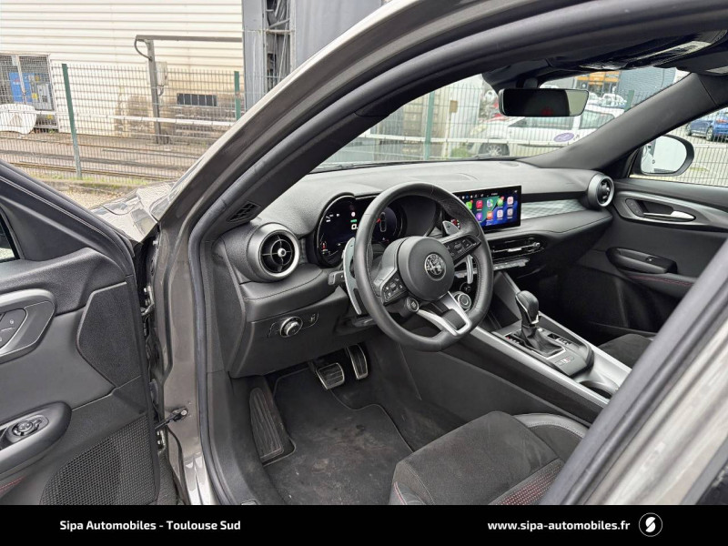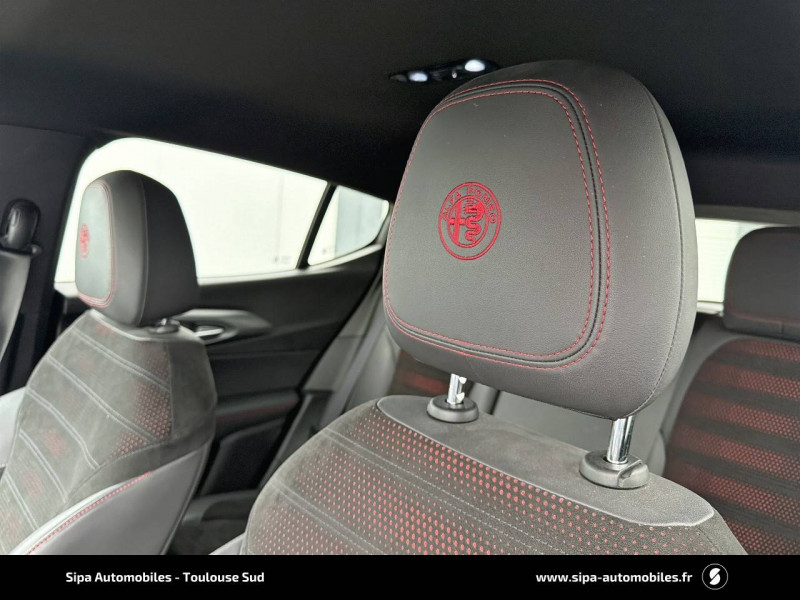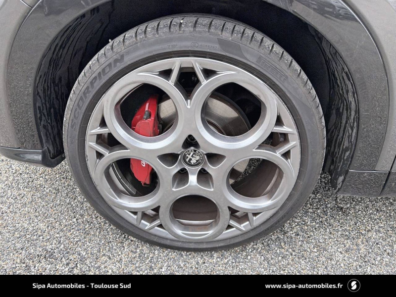 6 airbags (conducteur et passagers AV, latéraux, rideaux, genoux conducteur) / Accoudoir AV intégré dans le tunnel central / Alerte de collision AV / Alerte de rappel de présence sur les sièges AR / Alfa Connected Services / Antenne type requin / Badge Competizione / Banquette AR 60/40 avec trappe à ski / Caméra de recul avec lignes dynamiques / Ciel de toit sombre / Combiné d'instruments digital 12,3" / Coques de rétroviseurs peintes en noir / Détection de fatigue du conducteur / Eclairage d'ambiance 5 couleurs / Enjoliveurs de moyeux Alfa Romeo en blanc et noirs / Etriers de freins BREMBO peints en rouge / Extension de garantie 5 ans (2+3) ou 200000 km / Feux de route automatiques / Freinage d'urgence autonome urbain / Jantes alliage 20" Competizione Avec pneumatiques été / Kit anti-crevaison / Kit de carroserie finition Dark Miron / Navigation Europe / Palettes de changement de vitesse en aluminium / Pédalier en aluminium / Peinture Pastel Rouge Alfa / Prises 12V (console centrale et coffre) / Prise USB AR type A + C (Charge) / Prise USB AV type A + C (Charge et données) / Projecteurs Matrix Full-Led adaptatifs avec fonction anti-brouillard / Réglage des lombaires électrique 4 positions du conducteur / Régulateur de vitesse adaptatif intelligent avec lecture des panneaux couplé avec navigation / Régulateur et limiteur de vitesse intelligent avec lecture des panneaux / Rétroviseur intérieur électrochrome / Scudetto finition Dark Miron / Sélecteur de mode de conduite DNA (3 modes + ESC OFF) / Seuils de portes en aluminium / Système d'info-divertissement 10,2" tactile / Tapis de sol AV/AR / V de calandre noir / Vitres AR privatives / Vitres AV/AR électriques avec fonction anti-pincement / Volant sport en cuir pleine fleur avec bouton de démarrage