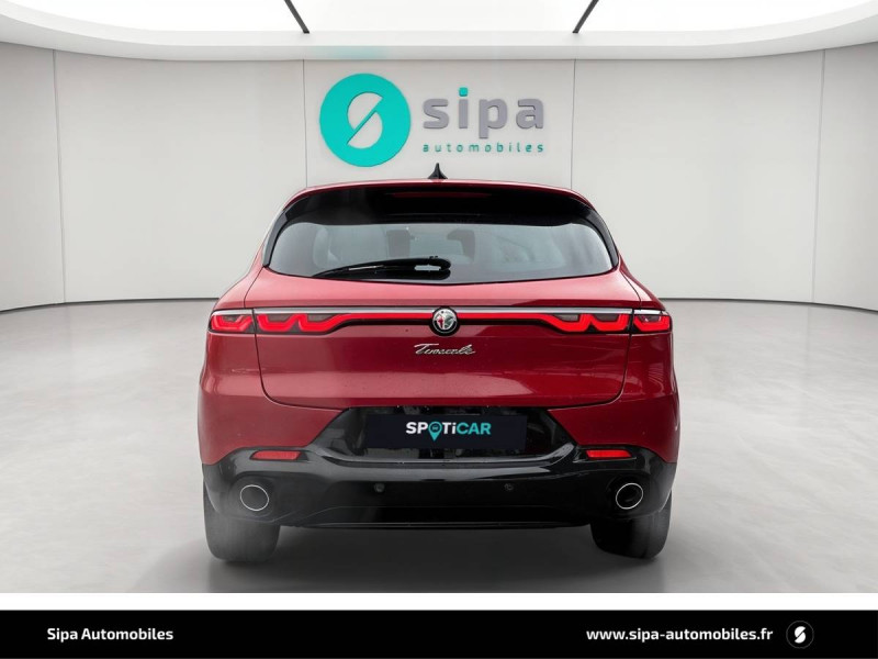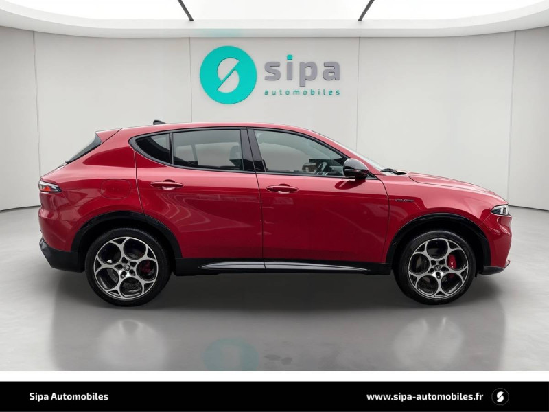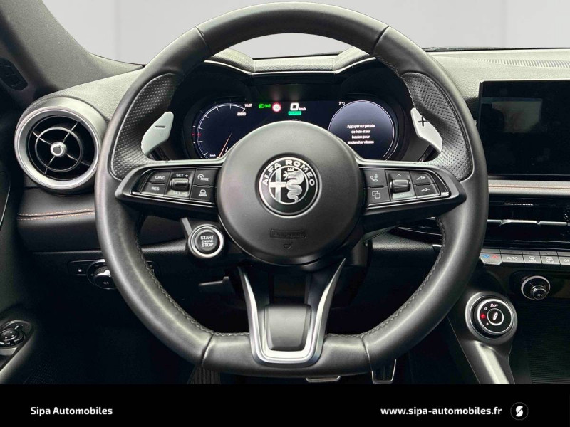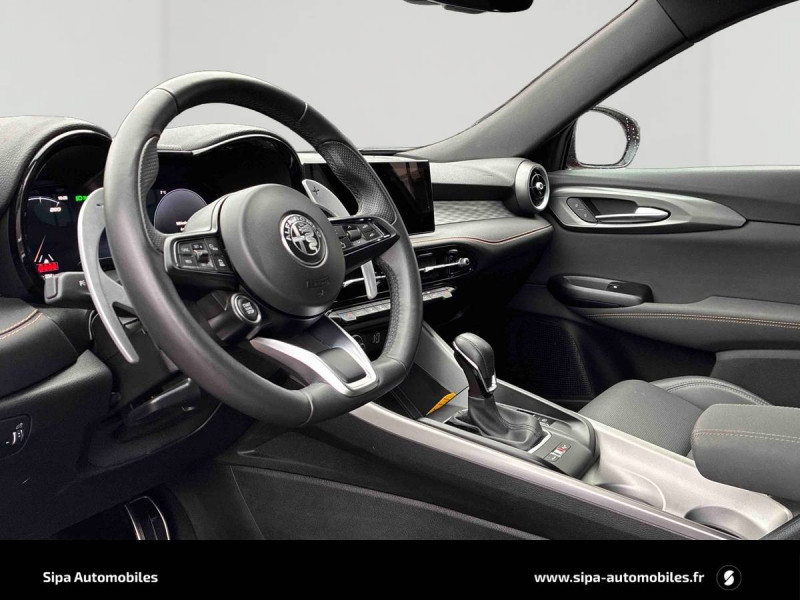 6 airbags (conducteur et passagers AV, latéraux, rideaux, genoux conducteur) / Accoudoir AV intégré dans le tunnel central / Alerte de collision AV / Alerte de rappel de présence sur les sièges AR / Alfa Connect Services / Assistant de vitesse intelligent (ISA) / Banquette AR 60/40 avec trappe à ski / Câble de recharge Type 2 Mode 3 / Caméra de recul avec lignes dynamiques / Capteur de pression des pneumatiques TPMS / Ciel de toit sombre / Combiné d'instruments digital 12,3" Cannochiale / Coques de rétroviseurs Noir brillant / Détection de fatigue du conducteur / Diffuseur noir / Double sortie d'échappement chromée / Enjoliveurs de moyeux Alfa Romeo en blanc et noirs / Etriers de frein rouges Brembo / Freinage d'urgence autonome urbain / Jantes alliage 19" Veloce avec pneumatiques été A+, Dimensions: 235/45 R19 / Jupes latérales noires / Kit anti-crevaison / Lame AV noir / Navigation Europe / Pack Hiver Buses de lave glace chauffantes, Sièges AV chauffants, Volant chauffant / Pack Ti Sellerie sport noir (cuir [dossier et assise] et matériaux synthétiques), Sièges AV chauffants et ventilés, Éclairage d'ambiance 5 couleurs, Contours de vitres Glossy Black, Réglage lombaire électrique à 4 positions pour conducteur et passager, Sièges électriques AV 8 positions conducteur et passager / Palettes au volant en aluminium / Pédalier en aluminium / Peinture Pastel Rouge Alfa / Prise USB AR type A + C (Charge) / Prise USB AV type A + C (Charge et données) / Projecteurs adaptatifs Full-Led Matrix avec fonction anti-brouillard / Régulateur de vitesse adaptatif intelligent avec lecture des panneaux couplé avec navigation / Régulateur et limiteur de vitesse intelligent avec lecture des panneaux / Rétroviseur intérieur électrochrome / Scudetto noir / Sélecteur de mode de conduite DNA (3 modes + ESC OFF) / Seuils de portes en aluminium / Suspension à double valve Alfa DSV / Système d'info-divertissement 10,2" tactile / Tapis de sol AV/AR / Vitres AR privatives / Vitres AV/AR électriques avec fonction anti-pincement / Volant sport en cuir pleine fleur avec bouton de démarrage