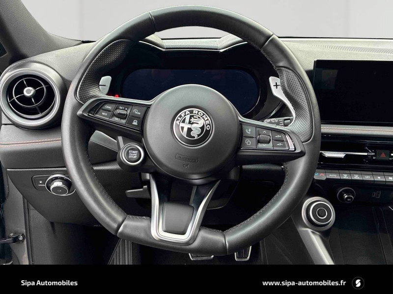 6 airbags (conducteur et passagers AV, latéraux, rideaux, genoux conducteur) / Accoudoir AV intégré dans le tunnel central / Alerte de collision AV / Alerte de rappel de présence sur les sièges AR / Alfa Connect Services / Assistant de vitesse intelligent (ISA) / Banquette AR 60/40 avec trappe à ski / Câble de recharge Type 2 Mode 3 / Caméra de recul avec lignes dynamiques / Capteur de pression des pneumatiques TPMS / Ciel de toit sombre / Combiné d'instruments digital 12,3" Cannochiale / Coques de rétroviseurs Noir brillant / Détection de fatigue du conducteur / Diffuseur noir / Double sortie d'échappement chromée / Enjoliveurs de moyeux Alfa Romeo en blanc et noirs / Etriers de frein rouges Brembo / Freinage d'urgence autonome urbain / Jantes alliage 19" Veloce avec pneumatiques été A+, Dimensions: 235/45 R19 / Jupes latérales noires / Kit anti-crevaison / Lame AV noir / Navigation Europe / Pack Hiver Buses de lave glace chauffantes, Sièges AV chauffants, Volant chauffant / Pack Ti Sellerie sport noir (cuir [dossier et assise] et matériaux synthétiques), Sièges AV chauffants et ventilés, Éclairage d'ambiance 5 couleurs, Contours de vitres Glossy Black, Réglage lombaire électrique à 4 positions pour conducteur et passager, Sièges électriques AV 8 positions conducteur et passager / Palettes au volant en aluminium / Pédalier en aluminium / Peinture Pastel Rouge Alfa / Prise USB AR type A + C (Charge) / Prise USB AV type A + C (Charge et données) / Projecteurs adaptatifs Full-Led Matrix avec fonction anti-brouillard / Régulateur de vitesse adaptatif intelligent avec lecture des panneaux couplé avec navigation / Régulateur et limiteur de vitesse intelligent avec lecture des panneaux / Rétroviseur intérieur électrochrome / Scudetto noir / Sélecteur de mode de conduite DNA (3 modes + ESC OFF) / Seuils de portes en aluminium / Suspension à double valve Alfa DSV / Système d'info-divertissement 10,2" tactile / Tapis de sol AV/AR / Vitres AR privatives / Vitres AV/AR électriques avec fonction anti-pincement / Volant sport en cuir pleine fleur avec bouton de démarrage
