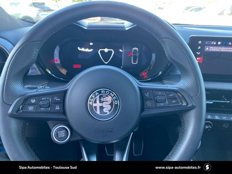 6 airbags (conducteur et passagers AV, latéraux, rideaux, genoux conducteur) / Accoudoir AV intégré dans le tunnel central / Alerte de collision AV / Alerte de rappel de présence sur les sièges AR / Alfa Connect Services / Assistant de vitesse intelligent (ISA) / Banquette AR 60/40 avec trappe à ski / Câble de recharge Type 2 Mode 3 / Caméra de recul avec lignes dynamiques / Capteur de pression des pneumatiques TPMS / Ciel de toit sombre / Combiné d'instruments digital 12,3" Cannochiale / Coques de rétroviseurs Noir brillant / Détection de fatigue du conducteur / Diffuseur noir / Enjoliveurs de moyeux Alfa Romeo en blanc et noirs / Freinage d'urgence autonome urbain / Jantes alliage 18" Ti Avec pneumatiques été A+. Dimensions : 235/50 R18 / Jupes latérales noires / Kit anti-crevaison / Lame AV noir / Navigation Europe / Pédalier en aluminium / Peinture Pastel Rouge Alfa / Prise USB AR type A + C (Charge) / Prise USB AV type A + C (Charge et données) / Projecteurs Full-Led avec signature lumineuse 3+3 / Régulateur de vitesse adaptatif intelligent avec lecture des panneaux couplé avec navigation / Régulateur et limiteur de vitesse intelligent avec lecture des panneaux / Rétroviseur intérieur électrochrome / Scudetto noir / Sélecteur de mode de conduite DNA (3 modes + ESC OFF) / Sellerie Tissu Premium Logo "Biscione" / Système d'info-divertissement 10,2" tactile / Vitres AR privatives / Vitres AV/AR électriques avec fonction anti-pincement / Volant sport en cuir pleine fleur avec bouton de démarrage