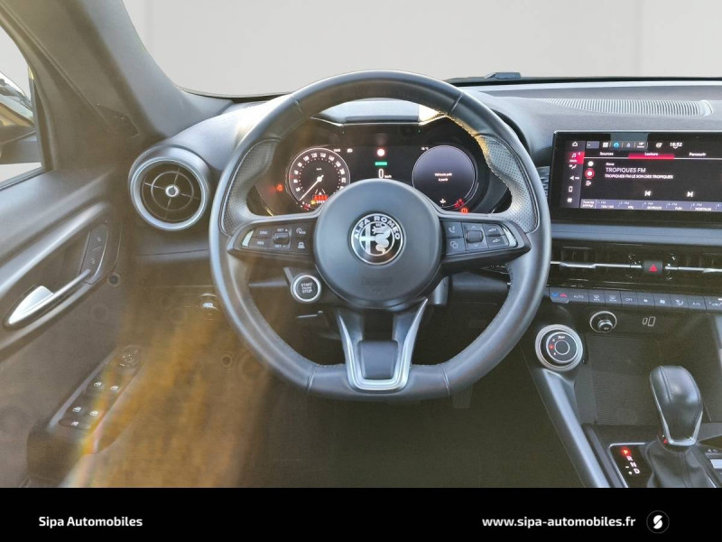 6 airbags (conducteur et passagers AV, latéraux, rideaux, genoux conducteur) / Accoudoir AV intégré dans le tunnel central / Alerte de collision AV / Alerte de rappel de présence sur les sièges AR / Alfa Connected Services / Antenne type requin / Banquette AR 60/40 avec trappe à ski / Ciel de toit sombre / Combiné d'instruments digital 12,3" / Coques de rétroviseurs Noir brillant / Détection de fatigue du conducteur / Eclairage d'ambiance / Enjoliveurs de moyeux Alfa Romeo en blanc et noirs / Feux de route automatiques / Freinage d'urgence autonome urbain / Jantes alliage 18" Super Avec pneumatiques été / Kit anti-crevaison / Navigation Europe / Peinture Pastel Rouge Alfa / Prises 12V (console centrale et coffre) / Prise USB AV type A + C (Charge et données) / Projecteurs Full-Led avec signature lumineuse / Réglage des lombaires électrique 4 positions du conducteur / Régulateur de vitesse adaptatif intelligent avec lecture des panneaux couplé avec navigation / Régulateur et limiteur de vitesse intelligent avec lecture des panneaux / Rétroviseur intérieur électrochrome / Scudetto finition Dark Miron Lame avant, Jupes latérales, Diffuseur / Sélecteur de mode de conduite DNA (3 modes + ESC OFF) / Sellerie AlfaTec/Tissu Carbonne / Système d'info-divertissement 10,2" tactile / Vitres AR privatives / Vitres AV/AR électriques avec fonction anti-pincement / Volant sport en cuir pleine fleur avec bouton de démarrage