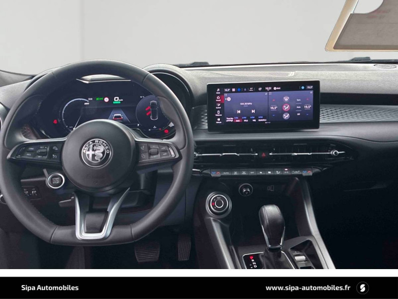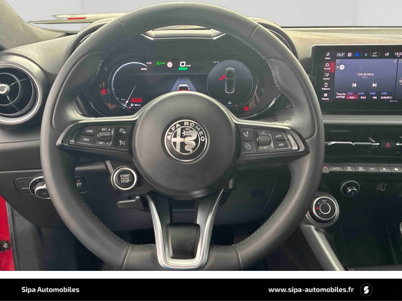 6 airbags (conducteur et passagers AV, latéraux, rideaux, genoux conducteur) / Accoudoir AV intégré dans le tunnel central / Alerte de collision AV / Alerte de rappel de présence sur les sièges AR / Alfa Connected Services / Antenne type requin / Ciel de toit sombre / Combiné d'instruments digital 12,3" / Coques de rétroviseurs Noir brillant / Détection de fatigue du conducteur / Feux de route automatiques / Freinage d'urgence autonome urbain / Jantes alliage 18" Super Avec pneumatiques été / Kit anti-crevaison / Peinture Pastel Rouge Alfa / Prises 12V (console centrale et coffre) / Prise USB AV type A + C (Charge et données) / Projecteurs Full-Led avec signature lumineuse / Régulateur et limiteur de vitesse intelligent avec lecture des panneaux / Scudetto finition chromé / Sélecteur de mode de conduite DNA (3 modes + ESC OFF) / Sellerie Tissu Premium Logo "Biscione" / Système d'info-divertissement 10,2" tactile / Vitres AV/AR électriques avec fonction anti-pincement