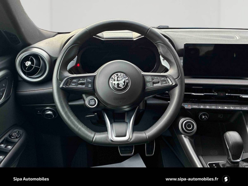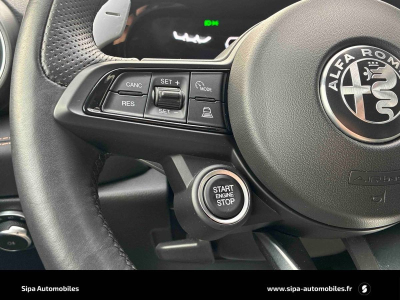 6 airbags (conducteur et passagers AV, latéraux, rideaux, genoux conducteur) / Accoudoir AV intégré dans le tunnel central / Alerte de collision AV / Alerte de rappel de présence sur les sièges AR / Alfa Connect Services / Assistant de vitesse intelligent (ISA) / Banquette AR 60/40 avec trappe à ski / Câble de recharge Type 2 Mode 3 / Caméra de recul avec lignes dynamiques / Capteur de pression des pneumatiques TPMS / Ciel de toit sombre / Combiné d'instruments digital 12,3" Cannochiale / Coques de rétroviseurs Noir brillant / Détection de fatigue du conducteur / Diffuseur noir / Double sortie d'échappement chromée / Enjoliveurs de moyeux Alfa Romeo en blanc et noirs / Etriers de frein rouges Brembo / Freinage d'urgence autonome urbain / Jantes alliage 19" Veloce avec pneumatiques été A+, Dimensions: 235/45 R19 / Jupes latérales noires / Kit anti-crevaison / Lame AV noir / Navigation Europe / Pack Hiver Buses de lave glace chauffantes, Sièges AV chauffants, Volant chauffant / Pack Ti Sellerie sport noir (cuir [dossier et assise] et matériaux synthétiques), Sièges AV chauffants et ventilés, Éclairage d'ambiance 5 couleurs, Contours de vitres Glossy Black, Réglage lombaire électrique à 4 positions pour conducteur et passager, Sièges électriques AV 8 positions conducteur et passager / Palettes au volant en aluminium / Pédalier en aluminium / Peinture Pastel Rouge Alfa / Prise USB AR type A + C (Charge) / Prise USB AV type A + C (Charge et données) / Projecteurs adaptatifs Full-Led Matrix avec fonction anti-brouillard / Régulateur de vitesse adaptatif intelligent avec lecture des panneaux couplé avec navigation / Régulateur et limiteur de vitesse intelligent avec lecture des panneaux / Rétroviseur intérieur électrochrome / Scudetto noir / Sélecteur de mode de conduite DNA (3 modes + ESC OFF) / Seuils de portes en aluminium / Suspension à double valve Alfa DSV / Système d'info-divertissement 10,2" tactile / Tapis de sol AV/AR / Vitres AR privatives / Vitres AV/AR électriques avec fonction anti-pincement / Volant sport en cuir pleine fleur avec bouton de démarrage