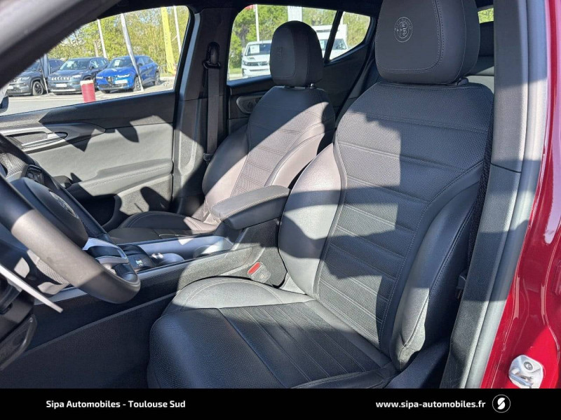 6 airbags (conducteur et passagers AV, latéraux, rideaux, genoux conducteur) / Accoudoir AV intégré dans le tunnel central / Alerte de collision AV / Alerte de rappel de présence sur les sièges AR / Alfa Connected Services / Antenne type requin / Badge Competizione / Banquette AR 60/40 avec trappe à ski / Caméra de recul avec lignes dynamiques / Ciel de toit sombre / Combiné d'instruments digital 12,3" / Coques de rétroviseurs Noir brillant / Détection de fatigue du conducteur / Eclairage d'ambiance 5 couleurs / Ecran infodivertissements 10,25" avec Navigation / Etriers de freins BREMBO peints en rouge / Feux de route automatiques / Freinage d'urgence autonome urbain / Jantes alliage 20" Competizione Avec pneumatiques été / Kit anti-crevaison / Navigation Europe / Palettes de changement de vitesse en aluminium / Pédalier en aluminium / Peinture Pastel Rouge Alfa / Prises 12V (console centrale et coffre) / Prise USB AR type A + C (Charge) / Prise USB AV type A + C (Charge et données) / Projecteurs Matrix Full-Led adaptatifs avec fonction anti-brouillard / Réglage des lombaires électrique 4 positions du conducteur / Régulateur de vitesse adaptatif intelligent avec lecture des panneaux couplé avec navigation / Régulateur et limiteur de vitesse intelligent avec lecture des panneaux / Rétroviseur intérieur électrochrome / Rétroviseurs et V de calandre noirs / Scudetto finition Dark Miron / Sélecteur de mode de conduite DNA (3 modes + ESC OFF) / Seuils de portes en aluminium / Système d'info-divertissement 10,2" tactile / Tapis de sol AV/AR / Vitres AR privatives / Vitres AV/AR électriques avec fonction anti-pincement / Volant sport en cuir pleine fleur avec bouton de démarrage