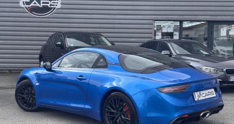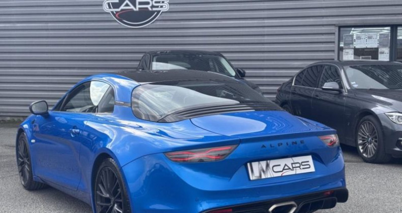 ======= OPTIONS ======= Aide au stationnement avant et arrière + caméra de recul Dossier des sièges en Carbone Pack de rangement Peinture Bleu Alpine Rétroviseur intérieur électrochrome Rétroviseurs extérieurs chauffants et rabattables électriquement Tapis de sol avec logo Alpine, surpiqures Bleu Toit carbone brillant ======= EQUIPEMENTS DE SERIE ======= 4 projecteurs avant à LED Aide au démarrage en côte Alpine Telemetrics : affichage en temps réel des paramètres techniques Boîte de vitesses automatique à double embrayage à 7 rapports Climatisation automatique avec microfiltre Coffre arrière 100 l Coffre avant 96 l Connectivité Bluetooth Différents modes de conduite - « Normal », « Sport » et « Track » Drapeau en fibre de carbone et orange sur les montants arrière Drapeau en fibre de carbone et orange sur les panneaux de porte conducteur et passager Eclairage d'accompagnement Follow me Home Etriers de frein orange Etriers de freins Brembo Feux arrière à LED, intégrant clignotants à défilement, feux stop et feu de recul Fond plat intégral Jantes «GT Race » Lettrage Alpine en chrome noir Palettes de commande au volant Pédalier en aluminium Régulateur et limiteur de vitesse Sièges Sabelt Dinamica Structure châssis et carrosserie légère composée à 96% d'aluminium Suspension à double triangulation Système audio Focal : 2 haut-parleurs et 2 tweeters d une puissance de 2 x 40 watts Système multimédia avec écran couleur tactile 7 Volant est gainé de cuir et de Dinamica avec un point zéro et des surpiqûres orange Volant réglable en hauteur et en profondeur Nb. Vitesses : 7 Conso Mixte : l/100