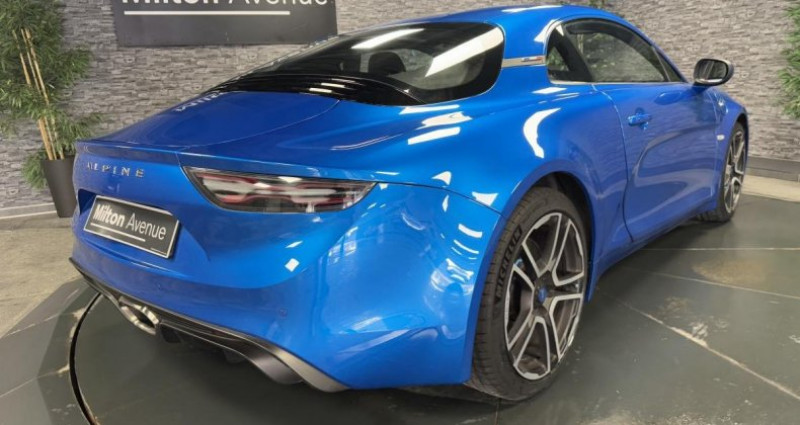 ======= EQUIPEMENTS DE SERIE ======= 2 Prises USB 3e feu stop à LED intégré à la vitre de custode 4 projecteurs avant à LED Aide au démarrage en côte Airbags conducteur et passager Alpine MySpin : réplication Smartphone compatible avec iOS et Android Alpine Telemetrics : affichage en temps réel des paramètres techniques Assistance au freinage d'urgence Cache moteur avec logo Alpine Climatisation automatique avec microfiltre Coffre arrière 100 l Coffre avant 96 l Connectivité Bluetooth Coutures contrastantes sur la planche de bord, les sièges et les panneaux de porte en bleu Alpine Diffuseur arrière à ailettes Drapeau français sur les panneaux de porte conducteur et passager Drapeaux français sur les montants de lunette arrière Essuie-glaces aérodynamiques Etriers de frein couleur bleu Alpine Feux arrière à LED, intégrant clignotants à défilement, feux stop et feu de recul Fond plat intégral Frein de parking intégré dans l étrier de frein arrière Harmonie intérieure noire et carbone mat Jantes Première Edition 18 en aluminium forgé, finition noir diamantée Kit gonflage de réparation Lève-vitres électriques impulsionnels Logo Alpine brodé sur les appuie-tête Logo Alpine sur les ailes avant Monogramme Alpine sur le bouclier avant et arrière Moteur central arrière Pédalier et repose-pied conducteur en aluminium Palettes au volant en aluminium Pavillon avec double bossage Peinture Bleu Alpine Régulateur et limiteur de vitesse Rétroviseur intérieur électrochrome Rétroviseurs extérieurs électriques chauffants, asphériques et rabattables électriquement Radar de recul Rappel ton caisse sur la partie supérieure des panneaux de porte Repose-pieds passager en aluminium Sélecteur de modes de conduite (Normal, Sport, Race) Seuil de porte en acier inoxydable avec monogramme Alpine Sièges baquet compétition Sabelt de conception allégée en cuir et microfibre noirs Sortie d'échappement centrale chromée Spots de lecture Structure châssis et carrosserie légère composée à 96% d'aluminium Système antiblocage des roues (ABS) Système audio Focal : 2 haut-parleurs et 2 tweeters d une puissance de 2 x 40 watts Système de freinage haute performance Système de navigation avec cartographie Europe, écran tactile Tapis de sol gansés de cuir et badge Alpine Volant avec logo bleu Alpine au centre, jante du volant habillée en cuir et microfibre avec repère « à midi » et surpiqûre en bleu Alpine Volant réglable en hauteur et en profondeur VSC (Système de contrôle de la stabilité) déconnectable Nb. Vitesses : 7 Conso Mixte : l/100