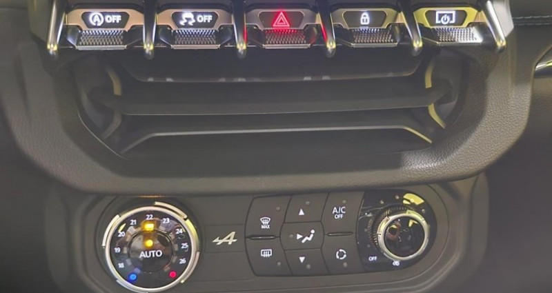 ======= OPTIONS ======= Aide au stationnement avant et arrière + caméra de recul Logo au centre du volant en Bleu Alpine Peinture Bleu Abysse Roues 18'' Sellerie Confort cuir noir avec surpiqûres bleues Système audio Focal ======= EQUIPEMENTS DE SERIE ======= 4 projecteurs avant à LED Aide au démarrage en côte Allumage automatique des essuie-glaces Boomerang feux avant chromé Climatisation automatique Coffre arrière 100 l Coffre avant 96 l ESP entiérement déconnectable Etriers de frein Brembo noirs Indicateur de changement de rapport Lève-vitres électriques impulsionnels Lunette arrière dégivrante Régulateur et limiteur de vitesse Système de détection de la pression des pneus Système de freinage standard avec étrier Brembo Système multimédia avec écran couleur tactile 7 : navigation, connectivité AndroidAuto et Apple Carplay , Bluetooth , services connectés Volant en cuir Nb. Vitesses : 7 Conso Mixte : l/100
