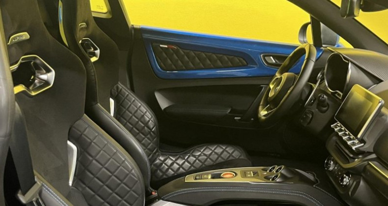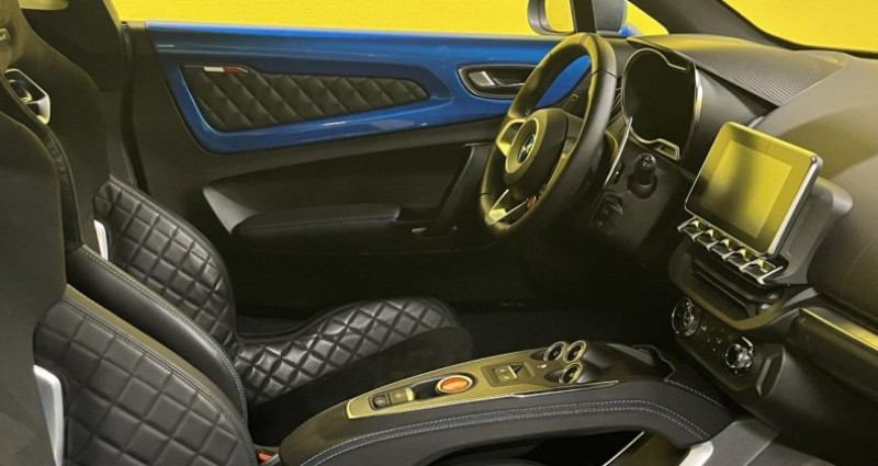 ======= OPTIONS ======= Aide au stationnement avant arrière Etriers de frein couleur bleu Alpine Logo Alpine sur les ailes avant Logo au centre du volant en Bleu Alpine Pack Rétroviseur Peinture Bleu Alpine Système de freinage Brembo haute performance Tapis de sol avec logo Alpine ======= EQUIPEMENTS DE SERIE ======= 2 Ports USB 4 projecteurs avant à LED Aide au démarrage en côte Airbags conducteur et passager Alerte visuelle et sonore du non bouclage des ceintures Allumage automatique des essuie-glaces Allumage automatique des phares par détecteur d'obscurité Assistance au freinage d'urgence Boomerang feux avant chromé Carte accès et démarrage mains-libres Ceintures de sécurité noires Châssis Alpine Ciel de toit en tissu noir Climatisation automatique Coffre arrière 100 l Coffre avant 96 l Désactivation manuelle de l'airbag passager Différents modes de conduite - « Normal », « Sport » et « Track » Diffuseur arrière Drapeau français sur les panneaux de porte conducteur et passager Drapeaux français bleu blanc rouge sur la custode Eclairage d'accompagnement Follow me Home ESP entièrement déconnectable Essuie-glace AquaBlade Etriers de frein Brembo noirs Feux arrière à LED, intégrant clignotants à défilement, feux stop et feu de recul Feux arrière rouges Fond plat intégral Frein de parking automatique intégré dans le système de freinage arrière Garantie 3 ans - 100 000 km Harmonie intérieure en cuir noir Indicateur de changement de rapport Inserts en carbone mat sur la console centrale Kit gonflage de réparation Lève-vitres électriques impulsionnels Lunette arrière dégivrante Lunette arrière intégrant le 3e feu stop Monogramme chromé Alpine sur les boucliers avant et arrière Pédalier Standard Palettes de commande au volant Pneumatiques « Standard » Michelin PS4 Pré-équipement alarme Régulateur et limiteur de vitesse Rétroviseur intérieur Rétroviseurs extérieurs électriques, chauffants et asphériques Seuils de portes en acier inoxydable Sièges baquets Sabelt Sport (mixte cuir microfibre) Surpiqûres constratées grises Système antiblocage des roues (ABS) Système audio Système de détection de la pression des pneus Système de freinage standard avec étrier Brembo Système de suspension à double triangles avant et arrière Système multimédia avec écran couleur tactile 7 : navigation, connectivité AndroidAuto et Apple Carplay , Bluetooth , services connectés Volant en cuir avec point milieu Volant réglable en hauteur et en profondeur Nb. Vitesses : 7 Conso Mixte : l/100