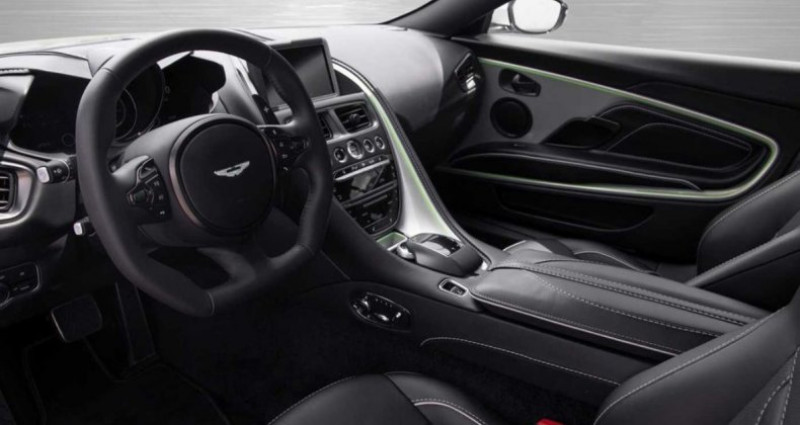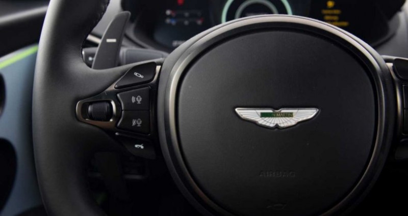 ??Garantie 12 mois Aston Martin 2e main Malus pour la France 17.100€ Boîte de vitesses automatique ZF à 8 rapports • Broderie AM Wings noire • Ciel de toit en cuir noir obsidien • Système audio Bang & Olufsen BeoSound • Sièges ventilés • Inserts décoratifs Lightning Silver avec bande vert citron • Pack Bijouterie Chrome foncé • Tapis de sol • Sièges à réglage électrique du support latéral • Étriers de freins vert citron avec trousse de premiers secours • Feux arrière fumés • Parapluie • Jantes forgées 21 à double rayon Shadow Chrome • Échappement en titane avec embouts chromés brillants