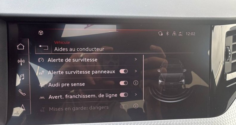 Cylindrée : 999 cm3 Nb. Vitesse : 7 - Pack Contraste II Noir Mythic *** Avec : Boîtiers de rétroviseurs extérieurs peints *** Avec : Bas de caisse peint - GRIS FLECHE / TOIT NOIR - Accoudoir central AV - Rétroviseurs extérieurs réglables, dégivrants et rabattables électriquement - Assistant de feux de route - CONFORMITE EUROPEENNE - PACK INTERIEUR S LINE - Audi virtual cockpit - Climatisation automatique bi-zone - Encadrement de calandre en Argent Aluminium mat - Jantes en aluminium coulé Audi Sport style 5 branches, gris graphite et finition haute brillance 7,5Jx17 avec pneus 215/45 R17 - Jantes en aluminium coulé Audi Sport style 5 branches, gris graphite et finition haute brillance 7,5Jx17 avec pneus 215/45 R17 - Moulures de seuil avec insert en aluminium à l'AV - Pack Esthétique Noir Plus - Phares et feux AR à LED, avec clignotants dynamiques à AR - Phares et feux AR à LED, avec clignotants dynamiques à AR - Pommeau de levier/sélecteur de vitesses en cuir perforé - Rétroviseur intérieur jour/nuit automatique - Style aluminium à l'intérieur - Volant Sport contour en cuir style 3 branches à méplat avec multifonctions plus - Volant Sport contour en cuir style 3 branches à méplat avec multifonctions plus - Affichage de contrôle de pression des pneus - Airbags latéraux à l'AV et système d'airbags de tête - Appel d'urgence Audi connect et services - Applications décoratives structure polygone en laque diamant Gris Argent - Applications décoratives étendues en laque Quartz Gris structuré dans l'insert du diffuseur d'air et de la console centrale ainsi que dans la poignée de la commande intérieure de verrouillage des portières - Applications décoratives étendues sur le tableau de bord façon verre en noir, de l'écran couleur MMI touch jusqu'aux triangles de portières AV façon verre en noir - Assistant de démarrage en côte (Audi Hill Hold Assist) - Audi Connect sécurité et assistance en ligne - Audi Drive Select - Audi Parking System AR - Audi Parking System Plus - Audi Parking System Plus - Audi Pre Sense front - Audi Smartphone Interface - Avertissement de franchissement de ligne - Barrette du diffuseur AR : Gris Platine mat - Bas de caisse dans la couleur de carrosserie - Becquet de pavillon S line - Boîtiers de rétroviseurs extérieurs couleur carrosserie sauf Blanc Cortina - Calandre en Noir mat grainé - Caméra de recul - Châssis standard - Ciel de pavillon en tissu Noir - Clé confort - Câbles de recharge pour téléphone portable compatibles Apple et Android - Diffuseur AR en noir titane mat - Dossier de banquette AR rabattable en deux parties 40:60 ou entièrement - Détecteur d'occupation des sièges - Détecteur de pluie et de luminosité - Eclairage intérieur - Emblème S-Line sur les ailes AV - Encadrement des prises d'air latérales en Noir Titane - Essuie-glace AR à intermittence - Estampillage S line sur le dossier des sièges AV - Feux AR rouges - Feux de brouillard AR - Frein à main manuel en revêtement plastique - Grille de diffuseur AR : Noir Titane mat - Interface Bluetooth - Interface USB de type A pour le chargement d'appareils externes uniquement - Lame de pare-chocs AV en Gris Platine mat - Limiteur de vitesse - Lève-vitres électriques à l'AV et à l'AR - Lèvres de becquet latérales à l'AV en noir mat grainé - MMI Radio plus - Pare-brise en verre athermique avec bande grise sur la partie supérieure du pare-brise - Pare-brise en verre athermique avec bande grise sur la partie supérieure du pare-brise - Pare-chocs S line - Prises d'air latérales à l'AV en noir mat grainé - Pédalier en acier inoxydable - Régulateur de vitesse - Régulateur de vitesse - Rétroviseurs extérieurs réglables électriquement et dégivrants - Set de réparation pour pneus - Sièges AV sport - Sièges conducteur et passager AV réglables en hauteur - Surpiqûres contrastées en argent fin - Système de lecture des panneaux de signalisation par caméra - Système Start & Stop avec récupération d'énergie au freinage - Tapis complémentaires AV et AR avec surpiqûres contrastées - Tapis de sol AV/AR - Trousse de secours avec triangle de présignalisation - Vitres AR surteintées - Vitres athermiques