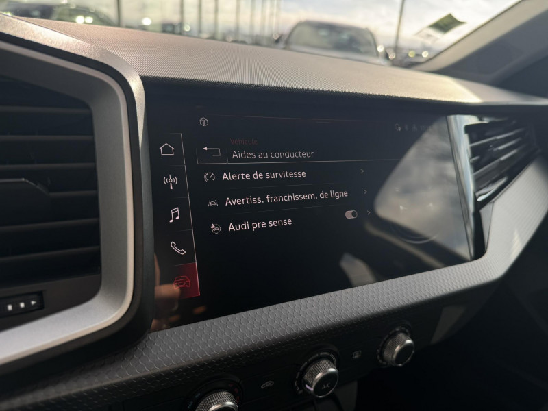 Encadrement de calandre en Argent Aluminium mat / Jantes en aluminium coulé style 5 branches en V partiellement polies, 7,5Jx17," pneus: 215/45 R17 / Moulures de seuil avec insert en aluminium à l'AV / Phares et feux AR à LED, avec clignotants dynamiques à AR / Préparation pour la navigation MMI plus et Audi virtual cockpit / Volant en cuir style 3 branches avec multifonctions / Airbags latéraux à l'AV et système d'airbags de tête / Appel d'urgence Audi connect et services / Applications décoratives structure polygone en laque fine Ardoise / Applications décoratives étendues en laque diamant Gris Argent dans l'insert du diffuseur d'air et de la console centrale ainsi que dans la poignée de la commande intérieure de verrouillage des portières / Applications décoratives étendues sur le tableau de bord façon verre en noir, de l'écran couleur MMI touch jusqu'aux triangles de portières AV façon verre en noir / Audi Connect sécurité et assistance en ligne / Audi Parking System AR / Audi Pre Sense front / Audi Smartphone Interface / Boîtiers de rétroviseurs extérieurs couleur carrosserie sauf Blanc Cortina / rétroviseurs extérieurs noirs grainés / Calandre en Noir Titane / Châssis standard / Ciel de pavillon en tissu Gris Titane / Cléà fréquence radio / Câbles de recharge pour téléphone portable compatibles Apple et Android / Diffuseur AR en noir titane mat / Digital cockpit / Dossier de banquette AR rabattable en deux parties 40:60 ou entièrement / Détecteur d'occupation des sièges / Détecteur de pluie et de luminosité / Eclairage intérieur / Feux AR rouges / Frein à main manuel en revêtement plastique / Interface Bluetooth / Interface USB de type A pour le chargement d'appareils externes uniquement / Lèvres de becquet latérales à l'AV en noir mat grainé / MMI Radio plus / Pare-brise en verre athermique avec bande grise sur la partie supérieure du pare-brise / Prises d'air latérales à l'AV en noir mat grainé avec encadrement C en Noir Titane / Rétroviseur intérieur jour/nuit manuel / Set de réparation pour pneus / Système de lecture des panneaux de signalisation par caméra / Système Start & Stop avec récupération d'énergie au freinage / Tapis de sol AV/AR / Trousse de secours avec triangle de présignalisation