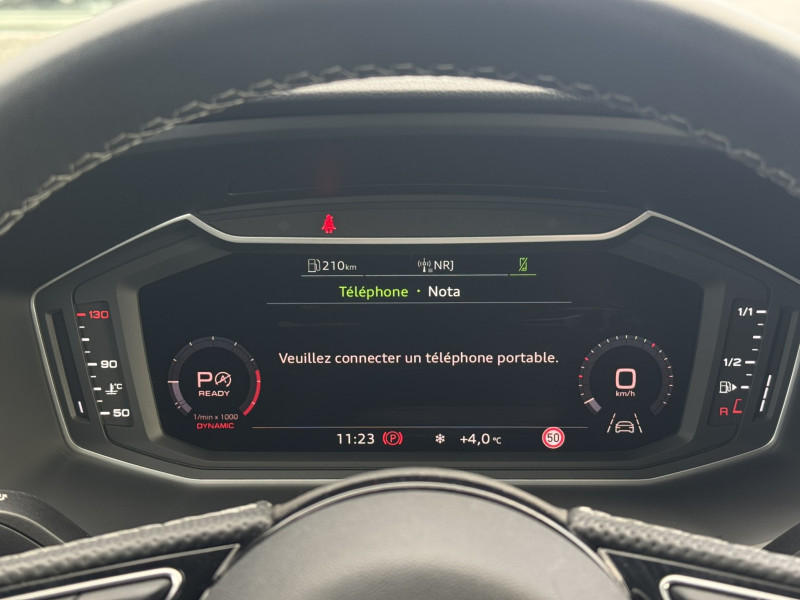Audi virtual cockpit / Encadrement de calandre en Argent Aluminium mat / Jantes en aluminium coulé Audi Sport style 5 branches, gris graphite et finition haute brillance 7,5Jx17" avec pneus 215/45 R17 / Moulures de seuil avec insert en aluminium à l'AV / Phares et feux AR à LED, avec clignotants dynamiques à AR / Pommeau de levier/sélecteur de vitesses en cuir perforé / Préparation pour la navigation MMI plus et Audi virtual cockpit / Rétroviseur intérieur jour/nuit automatique / Style aluminium à l'intérieur / Volant Sport contour en cuir style 3 branches à méplat avec multifonctions plus / Airbags latéraux à l'AV et système d'airbags de tête / Appel d'urgence Audi connect et services / Applications décoratives structure polygone en laque diamant Gris Argent / Applications décoratives étendues en laque Quartz Gris structuré dans l'insert du diffuseur d'air et de la console centrale ainsi que dans la poignée de la commande intérieure de verrouillage des portières / Applications décoratives étendues sur le tableau de bord façon verre en noir, de l'écran couleur MMI touch jusqu'aux triangles de portières AV façon verre en noir / Assistant de démarrage en côte (Audi Hill Hold Assist) / Audi Drive Select / Audi Parking System Plus / Audi Pre Sense front / Audi Smartphone Interface / Barrette du diffuseur AR : Gris Platine mat / Bas de caisse dans la couleur de carrosserie / Becquet de pavillon S line / Boîtiers de rétroviseurs extérieurs couleur carrosserie sur Blanc Cortina / Calandre en Noir mat grainé / Châssis standard / Ciel de pavillon en tissu Noir / Câbles de recharge pour téléphone portable / Diffuseur AR en noir titane mat / Détecteur d'occupation des sièges / Détecteur de pluie et de luminosité / Eclairage intérieur / Emblème S-Line sur les ailes AV / Encadrement des prises d'air latérales en Noir Titane / Estampillage S line sur le dossier des sièges AV / Feux AR rouges / Frein à main manuel en revêtement plastique / Grille de diffuseur AR : Noir Titane mat / Interface Bluetooth / Interface USB de type A / Lame de pare-chocs AV en Gris Platine mat / Lèvres de becquet latérales à l'AV en noir mat grainé / MMI Radio plus / Pare-brise en verre athermique avec bande grise sur la partie supérieure du pare-brise / Pare-chocs S line / Prises d'air latérales à l'AV en noir mat grainé / Pédalier en acier inoxydable / Set de réparation pour pneus / Surpiqûres contrastées en argent fin / Système de lecture des panneaux de signalisation par caméra / Système Start & Stop avec récupération d'énergie au freinage / Tapis complémentaires AV et AR avec surpiqûres contrastées / Tapis de sol AV/AR / Trousse de secours avec triangle de présignalisation