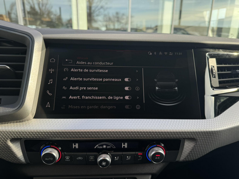 Audi virtual cockpit / Encadrement de calandre en Argent Aluminium mat / Jantes en aluminium coulé Audi Sport style 5 branches, gris graphite et finition haute brillance 7,5Jx17" avec pneus 215/45 R17 / Moulures de seuil avec insert en aluminium à l'AV / Phares et feux AR à LED, avec clignotants dynamiques à AR / Pommeau de levier/sélecteur de vitesses en cuir perforé / Préparation pour la navigation MMI plus et Audi virtual cockpit / Rétroviseur intérieur jour/nuit automatique / Style aluminium à l'intérieur / Volant Sport contour en cuir style 3 branches à méplat avec multifonctions plus / Airbags latéraux à l'AV et système d'airbags de tête / Appel d'urgence Audi connect et services / Applications décoratives structure polygone en laque diamant Gris Argent / Applications décoratives étendues en laque Quartz Gris structuré dans l'insert du diffuseur d'air et de la console centrale ainsi que dans la poignée de la commande intérieure de verrouillage des portières / Applications décoratives étendues sur le tableau de bord façon verre en noir, de l'écran couleur MMI touch jusqu'aux triangles de portières AV façon verre en noir / Assistant de démarrage en côte (Audi Hill Hold Assist) / Audi Drive Select / Audi Parking System Plus / Audi Pre Sense front / Audi Smartphone Interface / Barrette du diffuseur AR : Gris Platine mat / Bas de caisse dans la couleur de carrosserie / Becquet de pavillon S line / Boîtiers de rétroviseurs extérieurs couleur carrosserie sur Blanc Cortina / Calandre en Noir mat grainé / Châssis standard / Ciel de pavillon en tissu Noir / Câbles de recharge pour téléphone portable / Diffuseur AR en noir titane mat / Détecteur d'occupation des sièges / Détecteur de pluie et de luminosité / Eclairage intérieur / Emblème S-Line sur les ailes AV / Encadrement des prises d'air latérales en Noir Titane / Estampillage S line sur le dossier des sièges AV / Feux AR rouges / Frein à main manuel en revêtement plastique / Grille de diffuseur AR : Noir Titane mat / Interface Bluetooth / Interface USB de type A / Lame de pare-chocs AV en Gris Platine mat / Lèvres de becquet latérales à l'AV en noir mat grainé / MMI Radio plus / Pare-brise en verre athermique avec bande grise sur la partie supérieure du pare-brise / Pare-chocs S line / Prises d'air latérales à l'AV en noir mat grainé / Pédalier en acier inoxydable / Set de réparation pour pneus / Surpiqûres contrastées en argent fin / Système de lecture des panneaux de signalisation par caméra / Système Start & Stop avec récupération d'énergie au freinage / Tapis complémentaires AV et AR avec surpiqûres contrastées / Tapis de sol AV/AR / Trousse de secours avec triangle de présignalisation