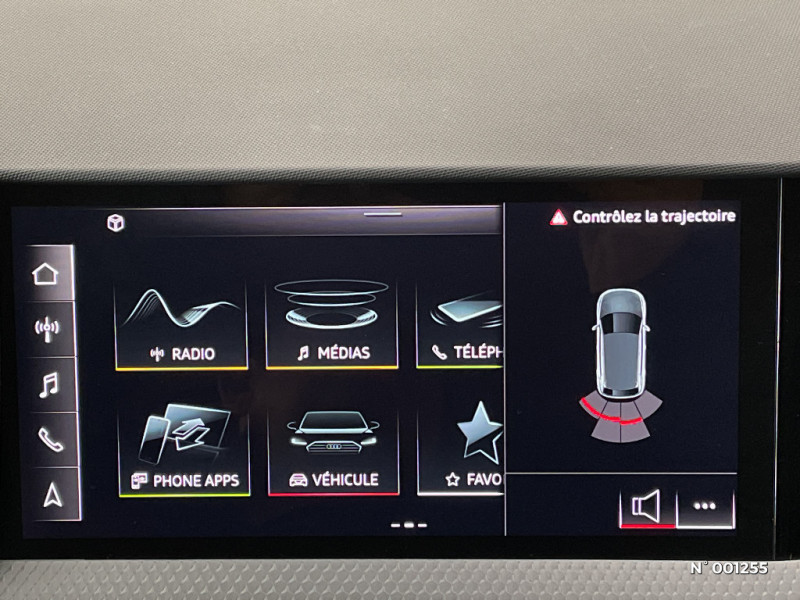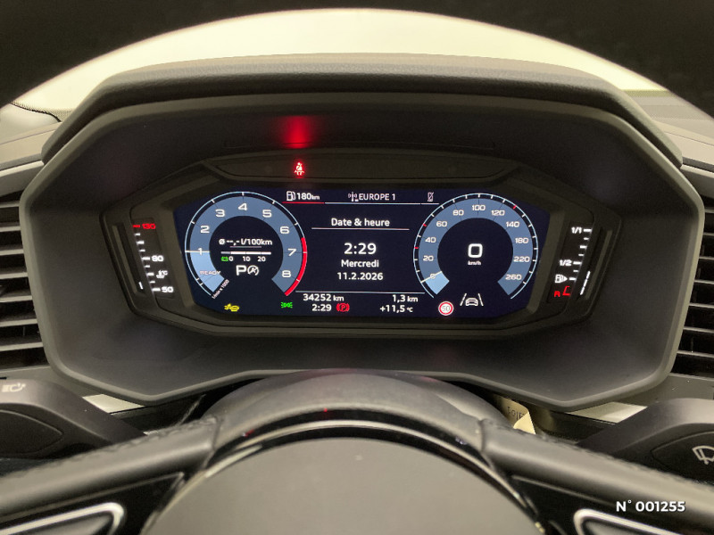Pack Rangement - Boîte à gants verrouillable - Vide-poches au dos des sièges, côtés conducteur et passager AV - Compartiment sous le siège AV droit / Interface Bluetooth / Audi Pre Sense front / Ciel de pavillon en tissu Gris Titane / Système de lecture des panneaux de signalisation par caméra / Airbags latéraux à l'AV et système d'airbags de tête / Audi Smartphone Interface / Tapis de sol à l'AV et à l'AR / Calandre en Noir Titane / Prises d'air latérales à l'AV en noir mat grainé avec encadrement C en Noir Titane / Détecteur de pluie et de luminosité / Rétroviseur intérieur jour/nuit manuel / Digital cockpit / Encadrement de calandre en Argent Aluminium mat / Feux AR rouges / Eclairage intérieur / Moulures de seuil avec insert en aluminium à l'AV / Lèvres de becquet latérales à l'AV en noir mat grainé / Phares et feux AR à LED, avec clignotants dynamiques à AR / Diffuseur AR en noir titane mat / MMI Radio plus / Préparation pour la navigation MMI plus et Audi virtual cockpit / Set de réparation pour pneus / Appel d'urgence Audi connect et services / Arches de toit et pavillon de couleur contrastée Gris Manhattan / Câbles de recharge pour téléphone portable / Interface USB de type A / Pack Cuir - Accoudoirs de portières en matériaux synthétiques / Applications décoratives étendues sur le tableau de bord façon verre en noir, de l'écran couleur MMI touch jusqu'aux triangles de portières AV façon verre en noir / Applications décoratives structure polygone en laque fine Ardoise / Applications décoratives étendues en laque diamant Gris Argent dans l?insert du diffuseur d'air et de la console centrale ainsi que dans la poignée de la commande intérieure de verrouillage des portières / Volant en cuir style 3 branches avec multifonctions / Jantes en aluminium coulé style 5 branches en V partiellement polies, 7,5Jx17", Pneus : 215/45R17 / Boîtiers de rétroviseurs extérieurs couleur carrosserie sauf Blanc Cortina / Châssis standard / Sellerie tissu Novum pour sièges sport à l'AV / Audi Parking System AR / Détecteur d'occupation des sièges / Trousse de secours avec triangle de présignalisation / Cléà fréquence radio / Frein à main manuel en revêtement plastique / Pare-brise en verre athermique avec bande grise / Audi Hill Hold Assist (Assistant de démarrage en côte)