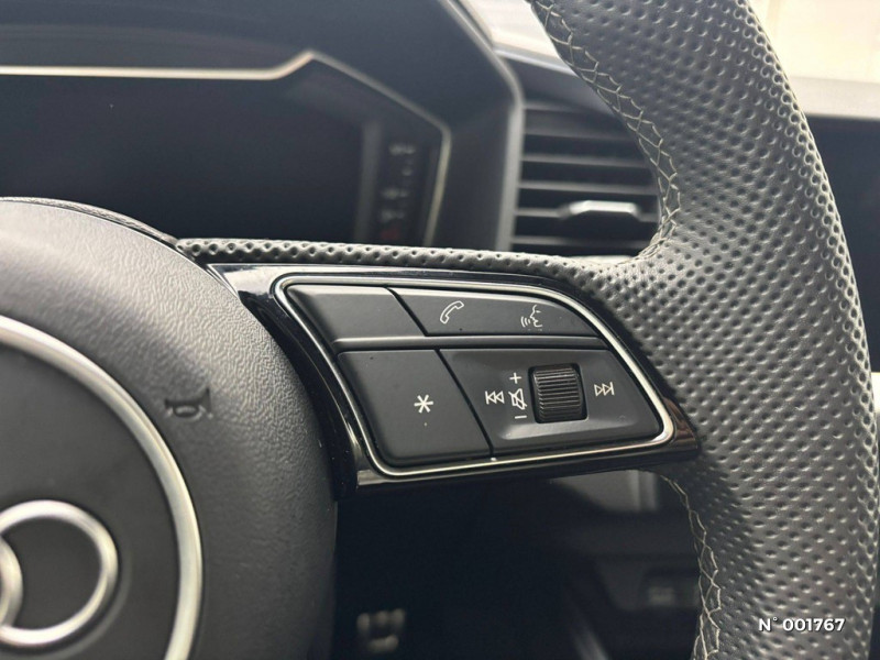 Interface USB de type A pour le chargement d'appareils externes uniquement / Encadrement des prises d'air latérales en Noir Titane / Estampillage S line sur le dossier des sièges AV / Feux AR rouges / Grille de diffuseur AR : Noir Titane mat / Trousse de secours avec triangle de présignalisation / Surpiqûres contrastées en argent fin / Volant en cuir style 3 branches avec multifonctions plus / Système Start & Stop avec récupération d'énergie au freinage / Système de lecture des panneaux de signalisation par caméra / Tapis complémentaires AV et AR avec surpiqûres contrastées / Tapis de sol AV/AR / Set de réparation pour pneus / Rétroviseur intérieur jour/nuit automatique / Style aluminium à l'intérieur / Eclairage intérieur / Emblème S-Line sur les ailes AV / Dossier de banquette AR rabattable en deux parties 40:60 ou entièrement / Encadrement de calandre en Argent Aluminium mat / Diffuseur AR en noir titane mat / Détecteur de pluie et de luminosité / Calandre en Noir mat grainé / Châssis standard / Cléà fréquence radio / Ciel de pavillon en tissu Noir / Bas de caisse dans la couleur de carrosserie / Boîtiers de rétroviseurs extérieurs couleur carrosserie sauf Blanc Cortina / rétroviseurs extérieurs noirs grainés / Becquet de pavillon S line / Câbles de recharge pour téléphone portable compatibles Apple et Android / Détecteur d'occupation des sièges / Audi Smartphone Interface / Audi Pre Sense front / Audi Connect sécurité et assistance en ligne / Audi Drive Select / Barrette du diffuseur AR : Gris Platine mat / Audi Parking System AR / Audi virtual cockpit / Applications décoratives étendues en laque Quartz Gris structuré dans l'insert du diffuseur d'air et de la console centrale ainsi que dans la poignée de la commande intérieure de verrouillage des portières / Applications décoratives étendues sur le tableau de bord façon verre en noir, de l'écran couleur MMI touch jusqu'aux triangles de portières AV façon verre en noir / Applications décoratives structure polygone en laque diamant Gris Argent / Appel d'urgence Audi connect et services / Assistant de démarrage en côte (Audi Hill Hold Assist) / Préparation pour la navigation MMI plus et Audi virtual cockpit / Phares halogènes avec feux de croisement, feux de route, feux diurnes, feux de position et clignotants à ampoules / Airbags latéraux à l'AV et système d'airbags de tête / Phares et feux AR à LED, avec clignotants dynamiques à AR / MMI Radio plus / Pommeau de levier/sélecteur de vitesses en cuir perforé / Pare-chocs S line / Pédalier en acier inoxydable / Prises d'air latérales à l'AV en noir mat grainé / Lèvres de becquet latérales à l'AV en noir mat grainé / Moulures de seuil avec insert en aluminium à l'AV / Pare-brise en verre athermique avec bande grise sur la partie supérieure du pare-brise / Frein à main manuel en revêtement plastique / Interface Bluetooth / Lame de pare-chocs AV en Gris Platine mat / Jantes en aluminium coulé style aéro 5 bras, 6,5Jx16", pneus : 195/55 R16