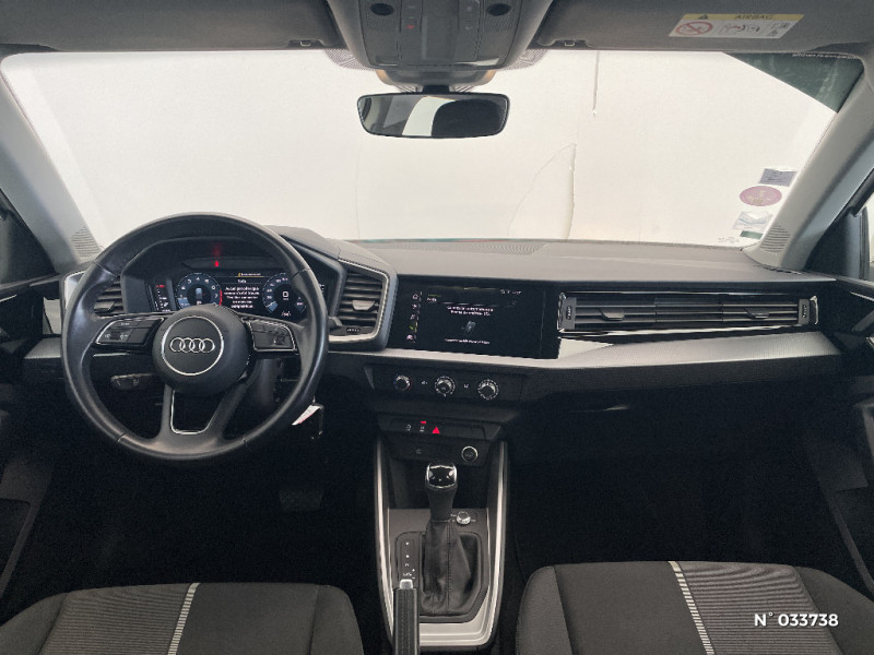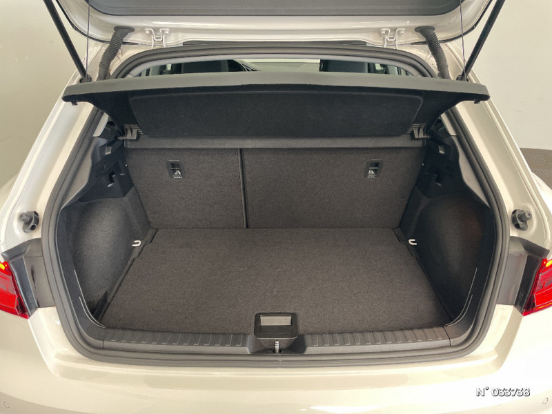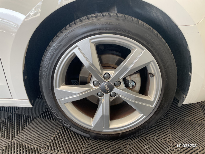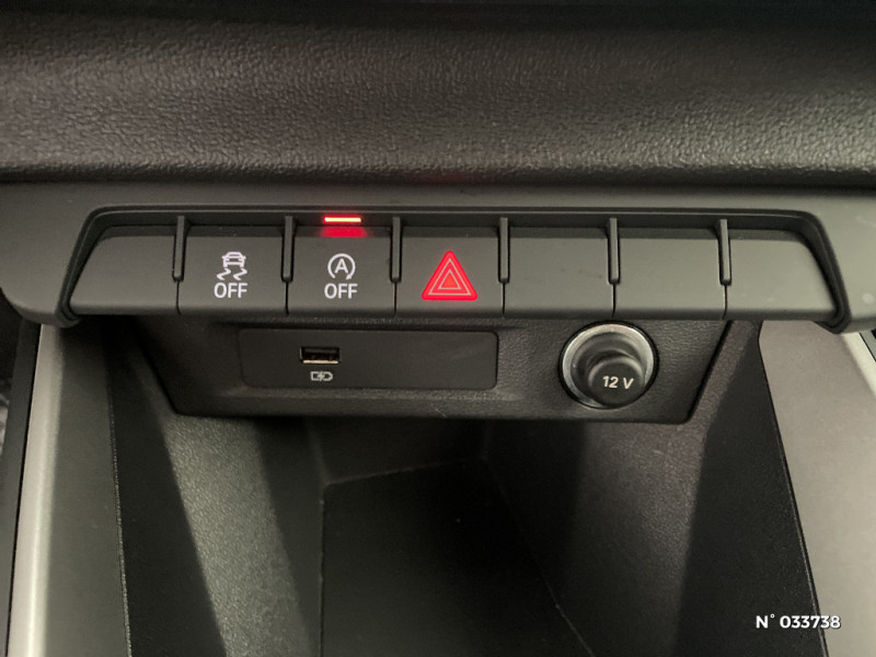 Digital cockpit / Interface USB de type A pour le chargement d'appareils externes uniquement / Encadrement de calandre en Argent Aluminium mat / Tapis de sol à l'AV et à l'AR / Calandre en Noir Titane / Diffuseur en Noir Titane mat / Lèvres de pare-chocs à l'AV en noir mat grainé / Prises d'air latérales à l'AV en noir mat grainé avec encadrement C en Noir Titane / Détecteur de pluie et de luminosité / Phares halogènes avec feux de croisement, feux de route, feux diurnes, feux de position et clignotants à ampoules / Rétroviseur intérieur jour/nuit manuel / Sellerie en tissu Debut / Moulures de seuil avec insert en aluminium à l'AV / Audi Connect sécurité et assistance en ligne / Lèvres de becquet latérales à l'AV en noir mat grainé / Audi Hill Hold Assist (Assistant de démarrage en côte) / 6 HP passifs ; 4 à l'AV avec 40 Watts et 2 à l'AR avec 20 Watts / Volant en cuir style 3 branches avec multifonctions / Jantes en aluminium coulé style 5 branches en étoile, 7.5Jx17" avec pneus 225/45 R17 / Boîtiers de rétroviseurs extérieurs couleur carrosserie sauf Blanc Cortina / Châssis standard / Audi Parking System AR / MMI Radio plus / Contrôle électronique de stabilisation (ESC) / Détecteur d'occupation des sièges / Ecrous de roues antivol / Sièges i-Size et top tether Siège passager avant i-Size et les deux sièges de côtéà l'arrière i-Size et top tether / Trousse de secours avec triangle de présignalisation / Applications décoratives étendues en laque diamant Gris Argent dans l?insert du diffuseur d'air et de la console centrale ainsi que dans la poignée de la commande intérieure de verrouillage des portières / Audi Pre Sense front / Ciel de pavillon en tissu Gris Titane / Cléà fréquence radio / Dossier de banquette AR rabattable en deux parties 40:60 ou entièrement / Frein à main manuel en revêtement plastique / Pare-brise en verre athermique avec bande grise sur la partie supérieure du pare-brise / Sièges standard à l'AV / Interface Bluetooth / Set de réparation pour pneus / Airbags latéraux à l'AV et système d'airbags de tête / Eclairage intérieur à LED / Applications décoratives étendues sur le tableau de bord façon verre en noir, de l'écran couleur MMI touch jusqu'aux triangles de portières AV façon verre en noir / Applications décoratives structure polygone en laque fine Ardoise