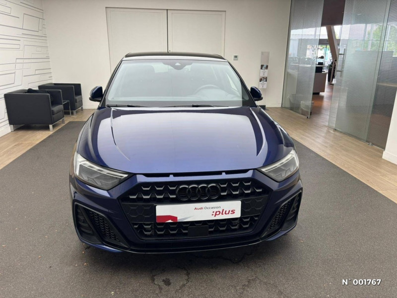 Volant en cuir style 3 branches avec multifonctions plus / Rétroviseur intérieur jour/nuit automatique / Set de réparation pour pneus / Surpiqûres contrastées en argent fin / Système de lecture des panneaux de signalisation par caméra / Estampillage S line sur le dossier des sièges AV / Feux AR rouges / Grille de diffuseur AR : Noir Titane mat / Pédalier en acier inoxydable / Phares et feux AR à LED, avec clignotants dynamiques à AR / Phares halogènes avec feux de croisement, feux de route, feux diurnes, feux de position et clignotants à ampoules / Préparation pour la navigation MMI plus et Audi virtual cockpit / Pare-brise en verre athermique avec bande grise sur la partie supérieure du pare-brise / Pare-chocs S line / Frein à main manuel en revêtement plastique / Interface USB de type A pour le chargement d'appareils externes uniquement / Interface Bluetooth / Lame de pare-chocs AV en Gris Platine mat / Jantes en aluminium coulé style aéro 5 bras, 6,5Jx16", pneus : 195/55 R16 / Encadrement des prises d'air latérales en Noir Titane / Becquet de pavillon S line / Audi Smartphone Interface / Audi Connect sécurité et assistance en ligne / Applications décoratives étendues en laque Quartz Gris structuré dans l'insert du diffuseur d'air et de la console centrale ainsi que dans la poignée de la commande intérieure de verrouillage des portières / Applications décoratives étendues sur le tableau de bord façon verre en noir, de l'écran couleur MMI touch jusqu'aux triangles de portières AV façon verre en noir / Audi Drive Select / Lèvres de becquet latérales à l'AV en noir mat grainé / Airbags latéraux à l'AV et système d'airbags de tête / Pommeau de levier/sélecteur de vitesses en cuir perforé / Prises d'air latérales à l'AV en noir mat grainé / Appel d'urgence Audi connect et services / Applications décoratives structure polygone en laque diamant Gris Argent / Assistant de démarrage en côte (Audi Hill Hold Assist) / MMI Radio plus / Moulures de seuil avec insert en aluminium à l'AV / Diffuseur AR en noir titane mat / Emblème S-Line sur les ailes AV / Eclairage intérieur / Bas de caisse dans la couleur de carrosserie / Audi virtual cockpit / Barrette du diffuseur AR : Gris Platine mat / Câbles de recharge pour téléphone portable compatibles Apple et Android / Ciel de pavillon en tissu Noir / Cléà fréquence radio / Châssis standard / Calandre en Noir mat grainé / Détecteur de pluie et de luminosité / Audi Parking System AR / Audi Pre Sense front / Boîtiers de rétroviseurs extérieurs couleur carrosserie sauf Blanc Cortina / rétroviseurs extérieurs noirs grainés / Style aluminium à l'intérieur / Système Start & Stop avec récupération d'énergie au freinage / Encadrement de calandre en Argent Aluminium mat / Détecteur d'occupation des sièges / Dossier de banquette AR rabattable en deux parties 40:60 ou entièrement / Trousse de secours avec triangle de présignalisation / Tapis de sol AV/AR / Tapis complémentaires AV et AR avec surpiqûres contrastées