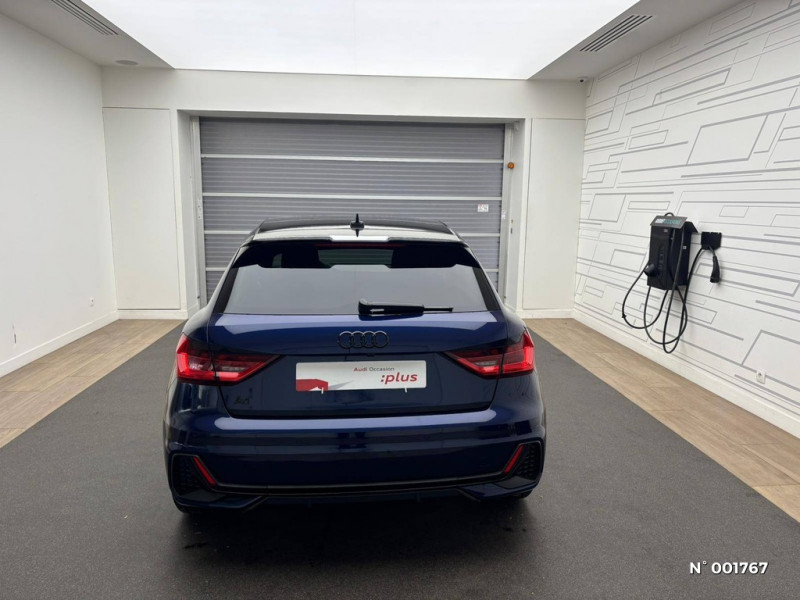 Set de réparation pour pneus / Tapis de sol AV/AR / Tapis complémentaires AV et AR avec surpiqûres contrastées / Système de lecture des panneaux de signalisation par caméra / Trousse de secours avec triangle de présignalisation / Style aluminium à l'intérieur / Surpiqûres contrastées en argent fin / Système Start & Stop avec récupération d'énergie au freinage / Volant en cuir style 3 branches avec multifonctions plus / Ciel de pavillon en tissu Noir / Dossier de banquette AR rabattable en deux parties 40:60 ou entièrement / Diffuseur AR en noir titane mat / Emblème S-Line sur les ailes AV / Détecteur d'occupation des sièges / Rétroviseur intérieur jour/nuit automatique / Eclairage intérieur / Encadrement de calandre en Argent Aluminium mat / Calandre en Noir mat grainé / Châssis standard / Bas de caisse dans la couleur de carrosserie / Becquet de pavillon S line / Câbles de recharge pour téléphone portable compatibles Apple et Android / Cléà fréquence radio / Détecteur de pluie et de luminosité / Applications décoratives étendues sur le tableau de bord façon verre en noir, de l'écran couleur MMI touch jusqu'aux triangles de portières AV façon verre en noir / Applications décoratives étendues en laque Quartz Gris structuré dans l'insert du diffuseur d'air et de la console centrale ainsi que dans la poignée de la commande intérieure de verrouillage des portières / Assistant de démarrage en côte (Audi Hill Hold Assist) / Audi Drive Select / Audi Parking System AR / Audi Pre Sense front / Audi Connect sécurité et assistance en ligne / Barrette du diffuseur AR : Gris Platine mat / Boîtiers de rétroviseurs extérieurs couleur carrosserie sauf Blanc Cortina / rétroviseurs extérieurs noirs grainés / Audi virtual cockpit / Audi Smartphone Interface / Moulures de seuil avec insert en aluminium à l'AV / Phares et feux AR à LED, avec clignotants dynamiques à AR / Pédalier en acier inoxydable / Pare-brise en verre athermique avec bande grise sur la partie supérieure du pare-brise / Pommeau de levier/sélecteur de vitesses en cuir perforé / Phares halogènes avec feux de croisement, feux de route, feux diurnes, feux de position et clignotants à ampoules / Appel d'urgence Audi connect et services / Applications décoratives structure polygone en laque diamant Gris Argent / Airbags latéraux à l'AV et système d'airbags de tête / Préparation pour la navigation MMI plus et Audi virtual cockpit / Prises d'air latérales à l'AV en noir mat grainé / MMI Radio plus / Pare-chocs S line / Interface USB de type A pour le chargement d'appareils externes uniquement / Interface Bluetooth / Lame de pare-chocs AV en Gris Platine mat / Lèvres de becquet latérales à l'AV en noir mat grainé / Jantes en aluminium coulé style aéro 5 bras, 6,5Jx16", pneus : 195/55 R16 / Encadrement des prises d'air latérales en Noir Titane / Estampillage S line sur le dossier des sièges AV / Feux AR rouges / Frein à main manuel en revêtement plastique / Grille de diffuseur AR : Noir Titane mat