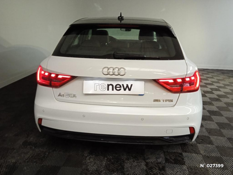 Arches et pavillon de toit de couleur contrastée / Audi Pre Sense front / Ciel de pavillon en tissu Gris Titane / Boîtiers de rétroviseurs extérieurs dans la couleur de la carrosserie / Set de réparation pour pneus / Airbags latéraux à l'AV et système d'airbags de tête / Audi Smartphone Interface / Eclairage intérieur à LED / Applications décoratives étendues sur le tableau de bord façon verre en noir, de l'écran couleur MMI touch jusqu'aux triangles de portières AV façon verre en noir / Applications décoratives structure polygone en laque fine Ardoise / Applications décoratives étendues en laque diamant Gris Argent dans l?insert du diffuseur d'air et de la console centrale ainsi que dans la poignée de la commande intérieure de verrouillage des portières / Volant en cuir style 3 branches avec multifonctions / Boîtiers de rétroviseurs extérieurs couleur carrosserie sauf Blanc Cortina / Châssis standard / Sellerie tissu Novum pour sièges sport à l'AV / Audi Parking System AR / Rétroviseur intérieur jour/nuit manuel / 6 HP passifs ; 4 à l'AV avec 40 Watts et 2 à l'AR avec 20 Watts / Digital cockpit / Encadrement de calandre en Argent Aluminium mat / Moulures de seuil avec insert en aluminium à l'AV / Jantes en aluminium coulé style 5 branches avec inserts en plastique noir, 7,5Jx17" avec pneus 215/45 R17 / Lèvres de becquet latérales à l'AV en noir mat grainé / Accoudoirs de portières en simili-cuir / Phares et feux AR à LED, avec clignotants dynamiques à AR / MMI Radio plus / Peinture vernie Blanc Cortina / Contrôle électronique de stabilisation (ESC) / Détecteur d'occupation des sièges / Ecrous de roues antivol / Sièges i-Size et top tether Siège passager avant i-Size et les deux sièges de côtéà l'arrière i-Size et top tether / Trousse de secours avec triangle de présignalisation / Cléà fréquence radio / Dossier de banquette AR rabattable en deux parties 40:60 ou entièrement / Frein à main manuel en revêtement plastique / Pare-brise en verre athermique avec bande grise / Tapis de sol à l'AV et à l'AR / Calandre en Noir Titane / Diffuseur en Noir Titane mat / Lèvres de pare-chocs à l'AV en noir mat grainé / Prises d'air latérales à l'AV en noir mat grainé avec encadrement C en Noir Titane / Détecteur de pluie et de luminosité / Interface Bluetooth